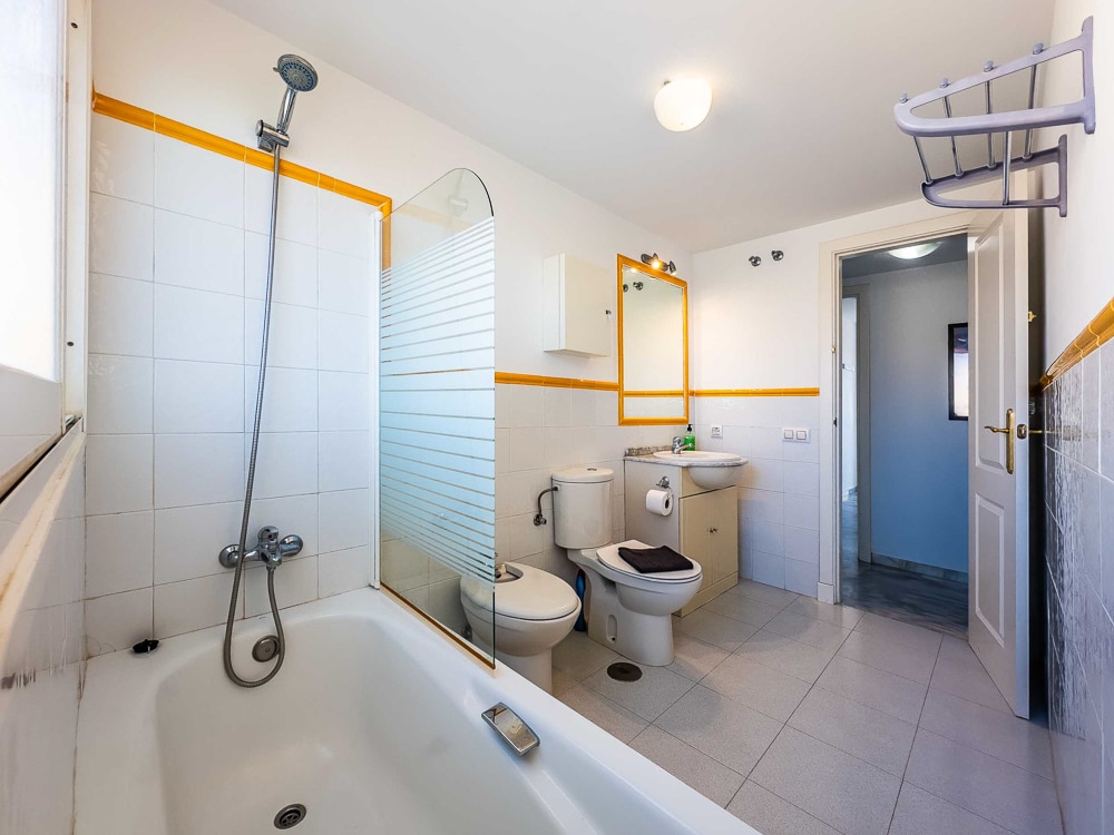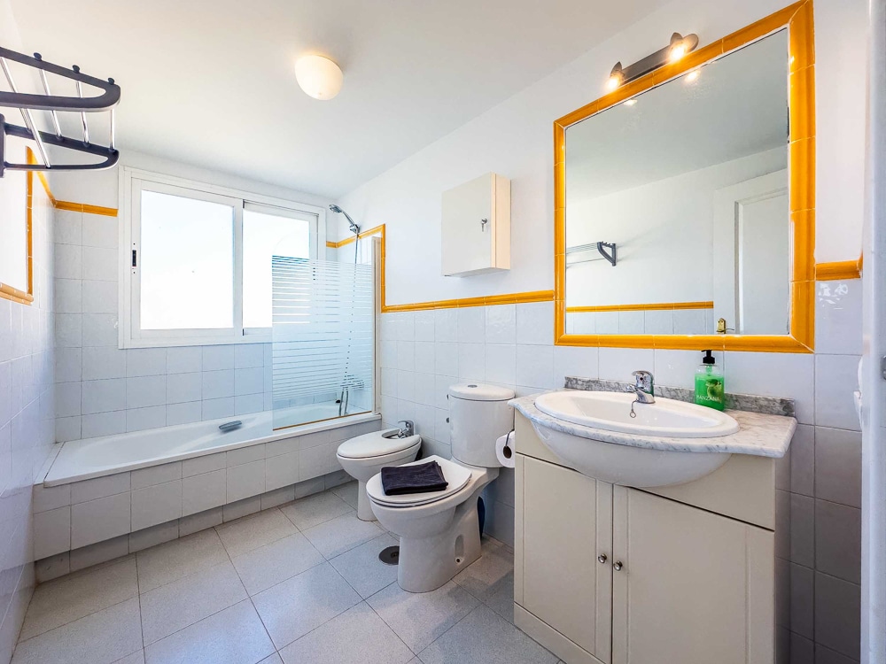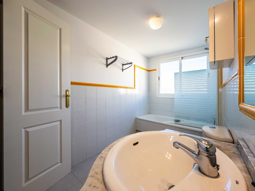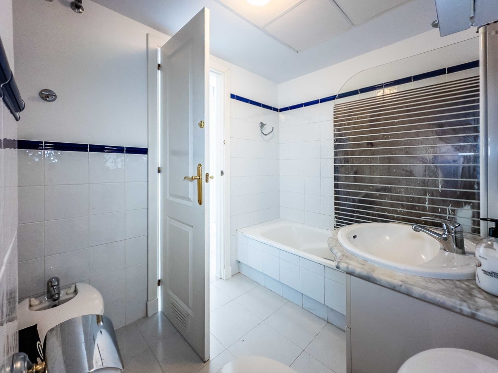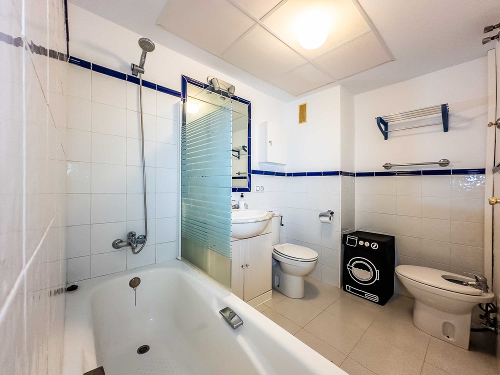 The apartment is on 110 m2 and features 3 bedrooms with fitted wardrobes, 2 of them with double bed and the last one with 2 single beds. Master bedroom has direct access to the terrace. 2 bathrooms, one of them “en suite” in the master bedroom and both bathrooms with bathtub, a spacious and bright living/dining room with direct access to the terrace, a fully fitted kitchen with all appliances and a 15 m2 sunny south-west facing terrace with beautiful views over Mediterranean Sea, the mountains and the environment.