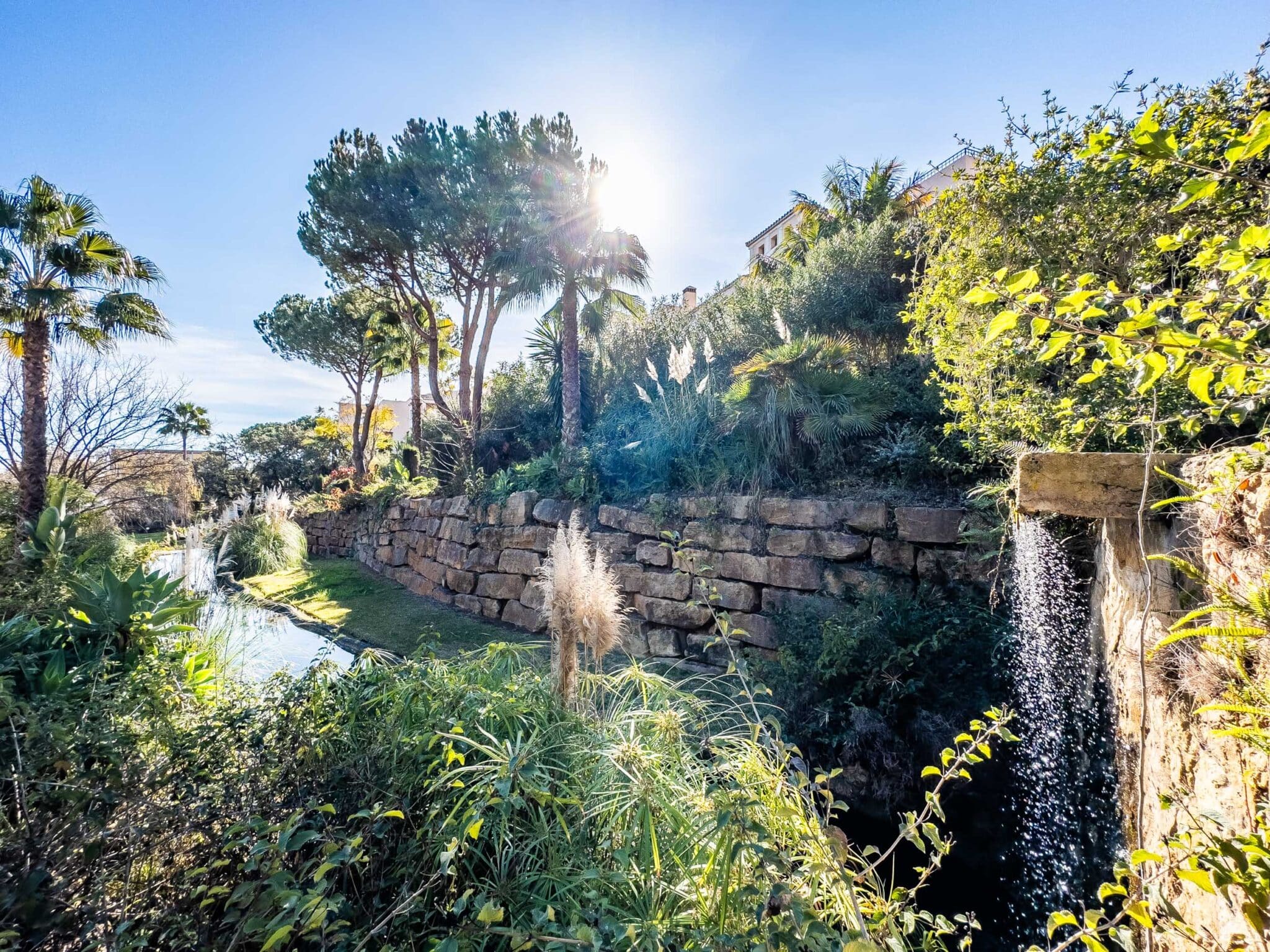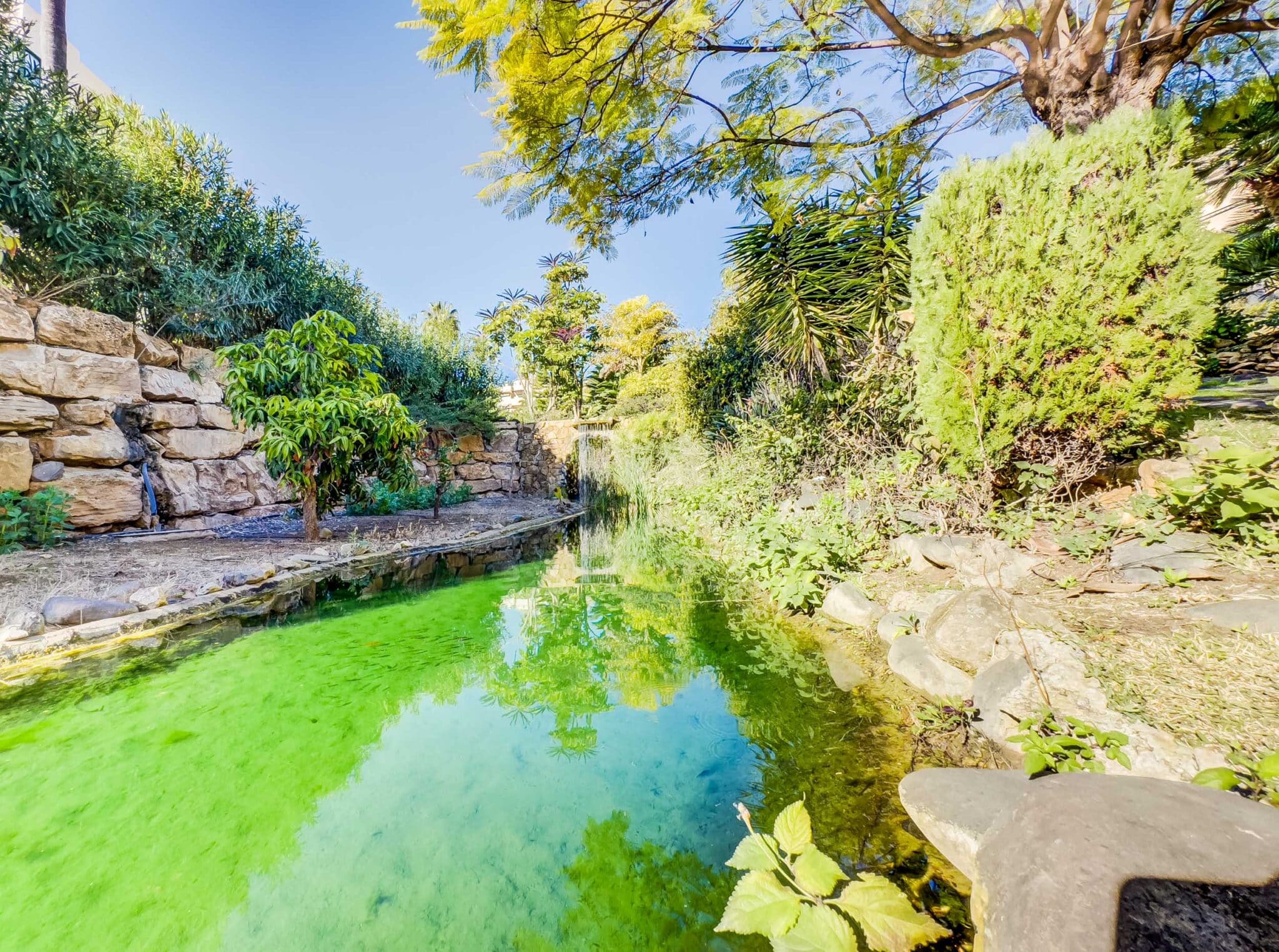 The complex offers a beautiful mature garden/park with tropical trees, flowers, a waterfall and 4 large swimming pools surrounded by green lawns. The garden and pool areas are incredible and make you feel like you are in paradise. All this and only 10 minutes walk from all services such as supermarkets, restaurants, bars, shops and much more in the center of Elviria. There are also beach clubs with spa-wellness very close to the apartment.