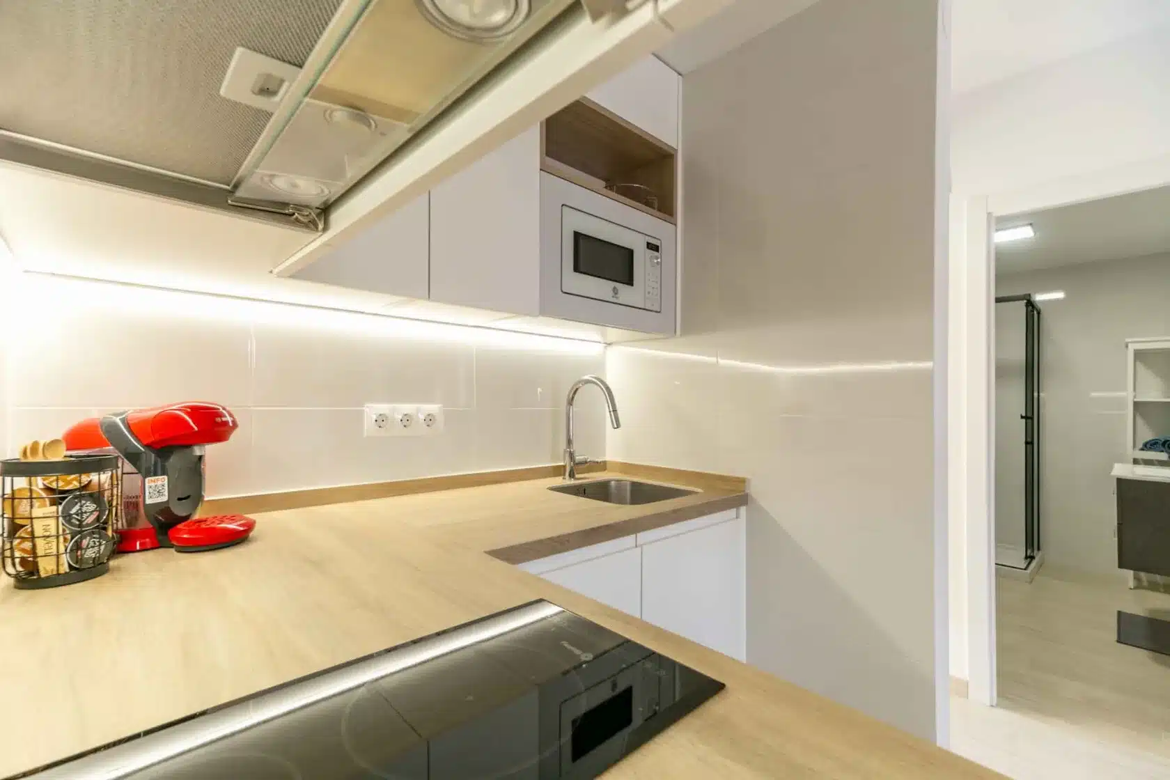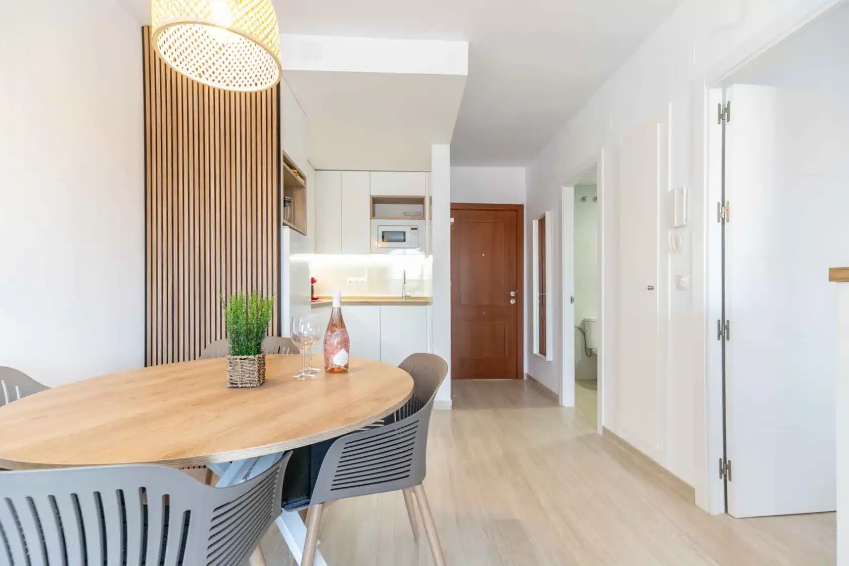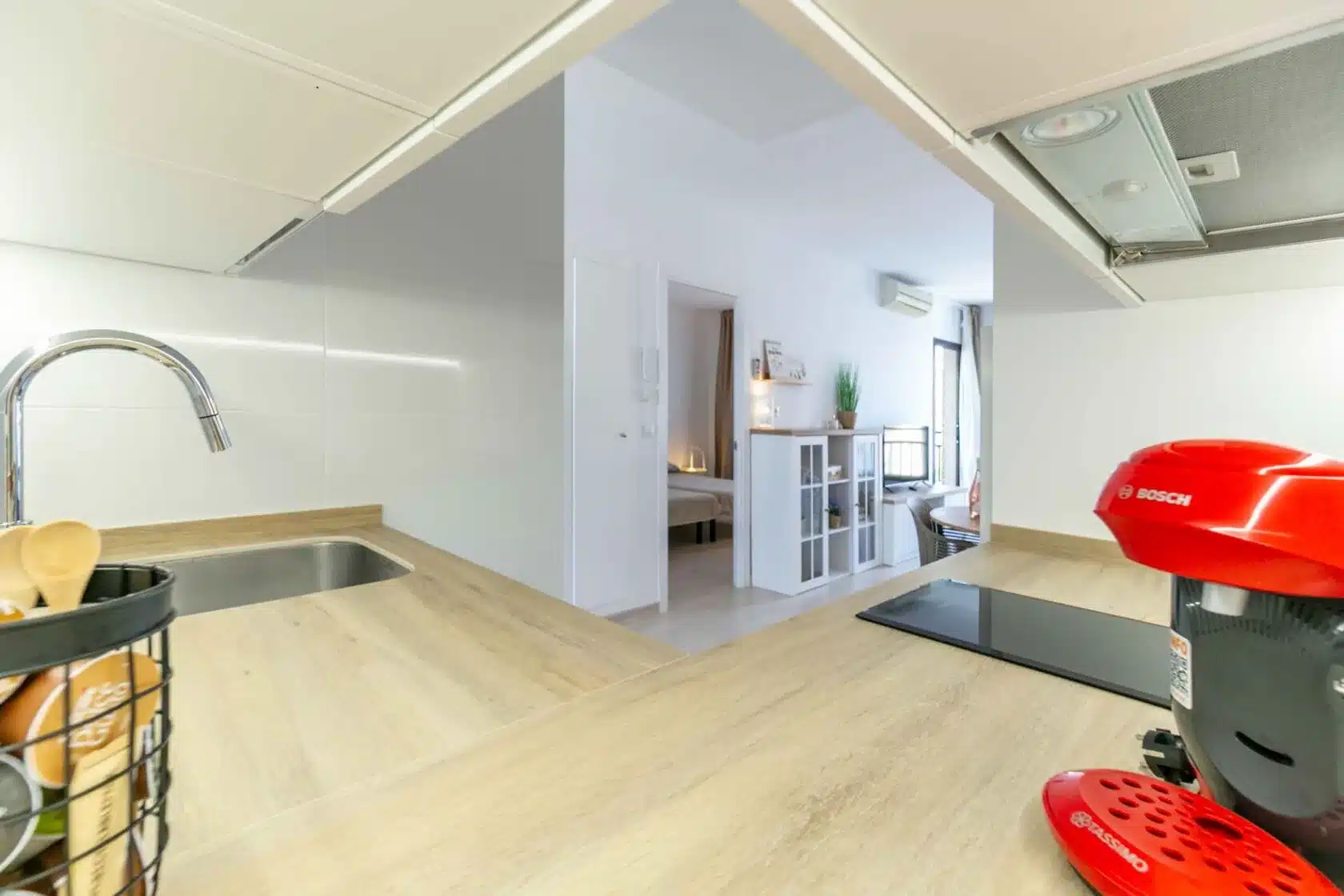 The apartment offers one spacious bedroom with a double bed and a large fitted wardrobe, providing ample storage for all your belongings. The cozy living room is designed for relaxation, completed with a comfortable sofa bed that can accommodate another two guests. Unwind with a good book, watch your favorite shows on the flat-screen TV, or simply gaze at the sea. The fully equipped kitchen has everything you may need during your stay. The contemporary bathroom includes all essential amenities and offers a refreshing space to start or end your day. Lastly, the cozy terrace will allow you to contemplate the Mediterranean Sea or watch the amazing pool while having a refreshing drink.