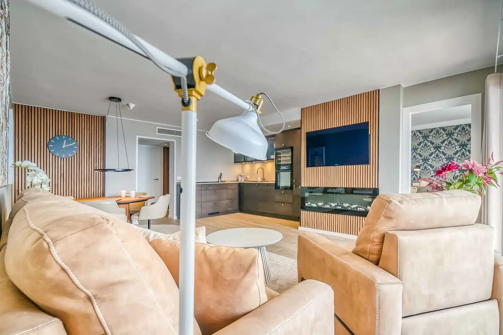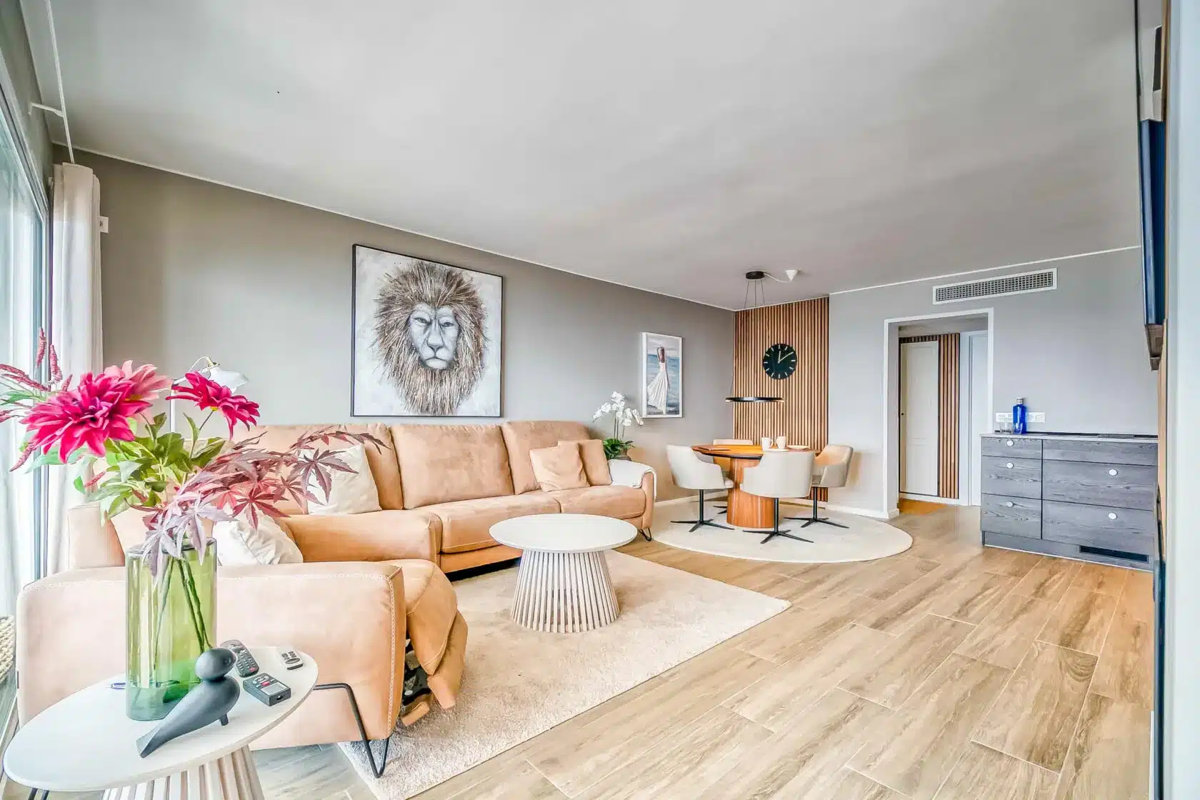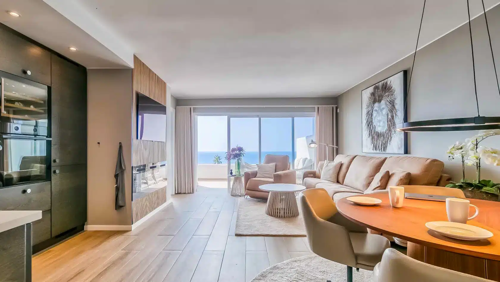 Furnished with sleek, modern Scandinavian furniture, the apartment exudes style and comfort. Large windows allow natural light to flood the space, while offering stunning views of the coastline.