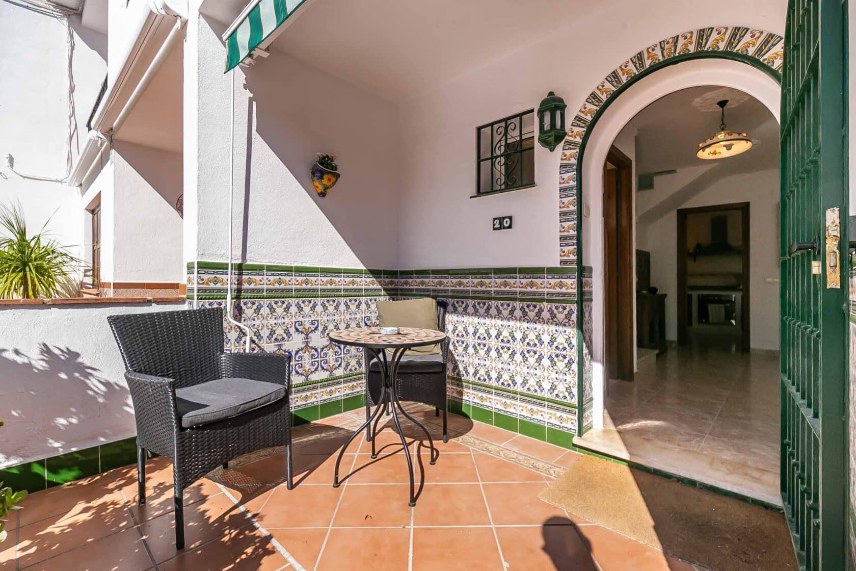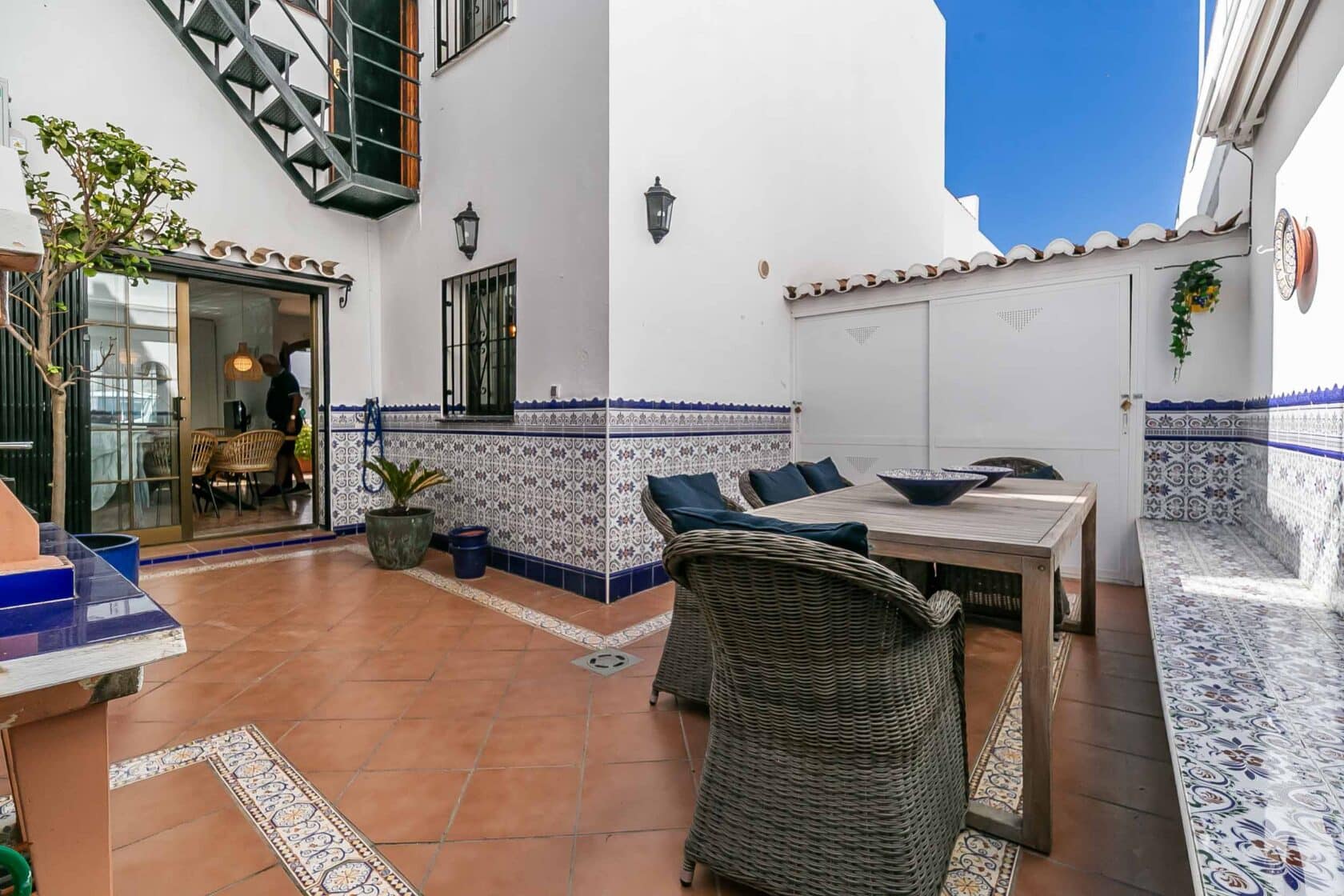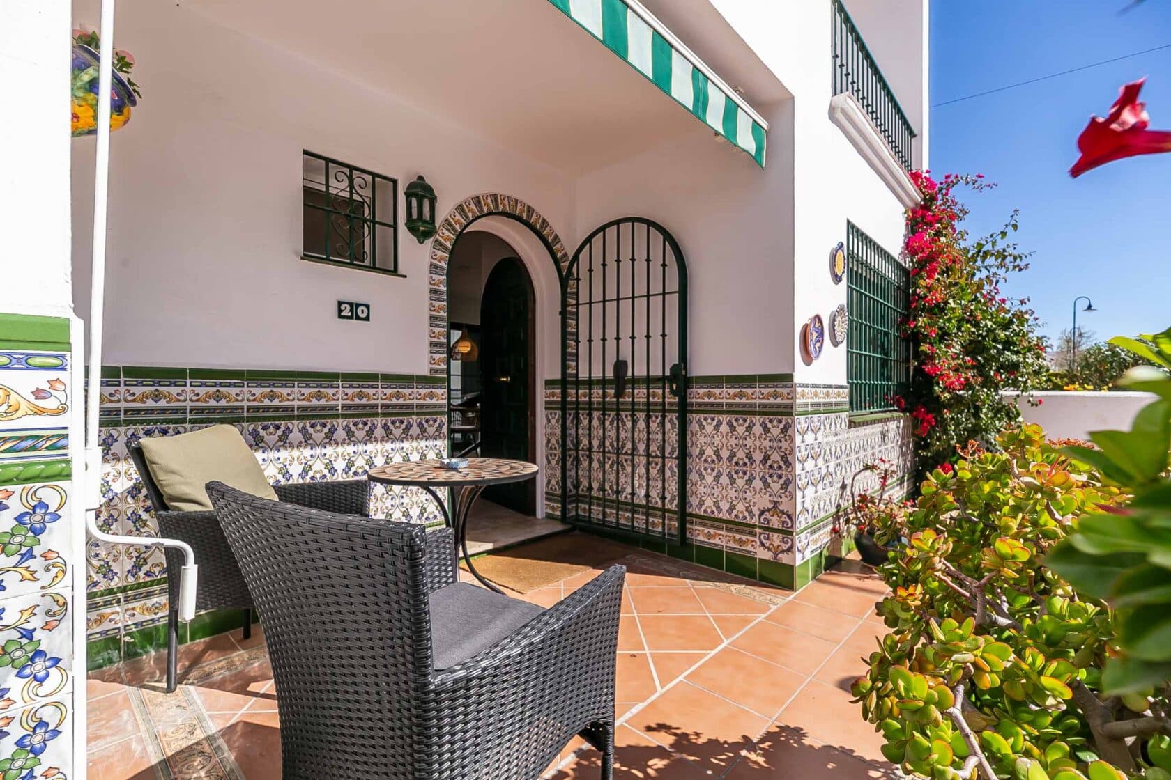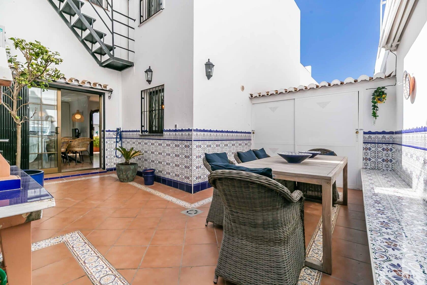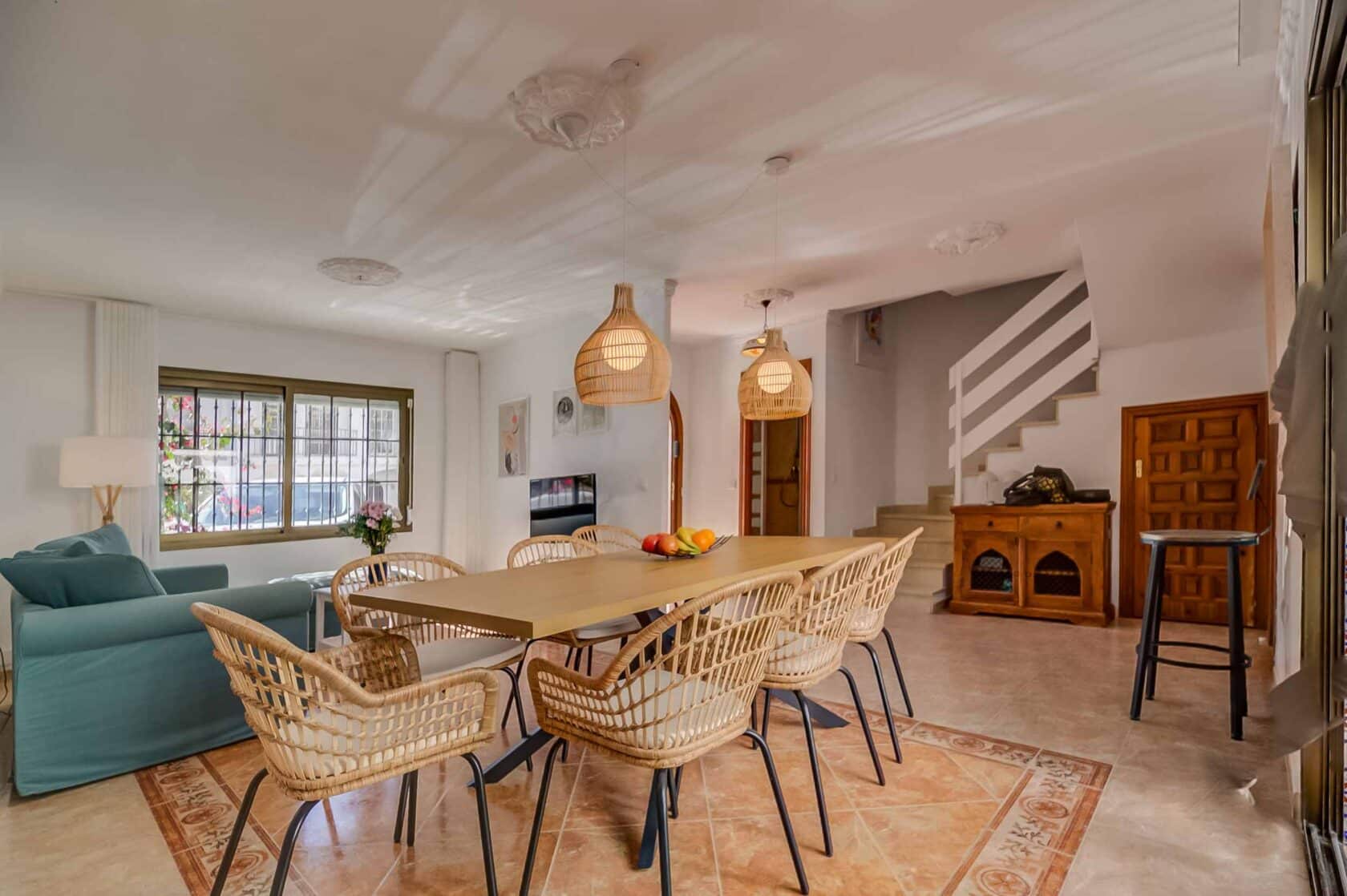 This andalusian spacious townhouse is designed across three levels to maximize comfort and leisure. On the ground floor, you’ll find a bright and tastefully furnished living-dining area with a comfortable sofa, Smart TV, and dining table for six. The space opens directly onto a private patio with an outdoor dining setup, perfect for relaxing or enjoying alfresco meals.