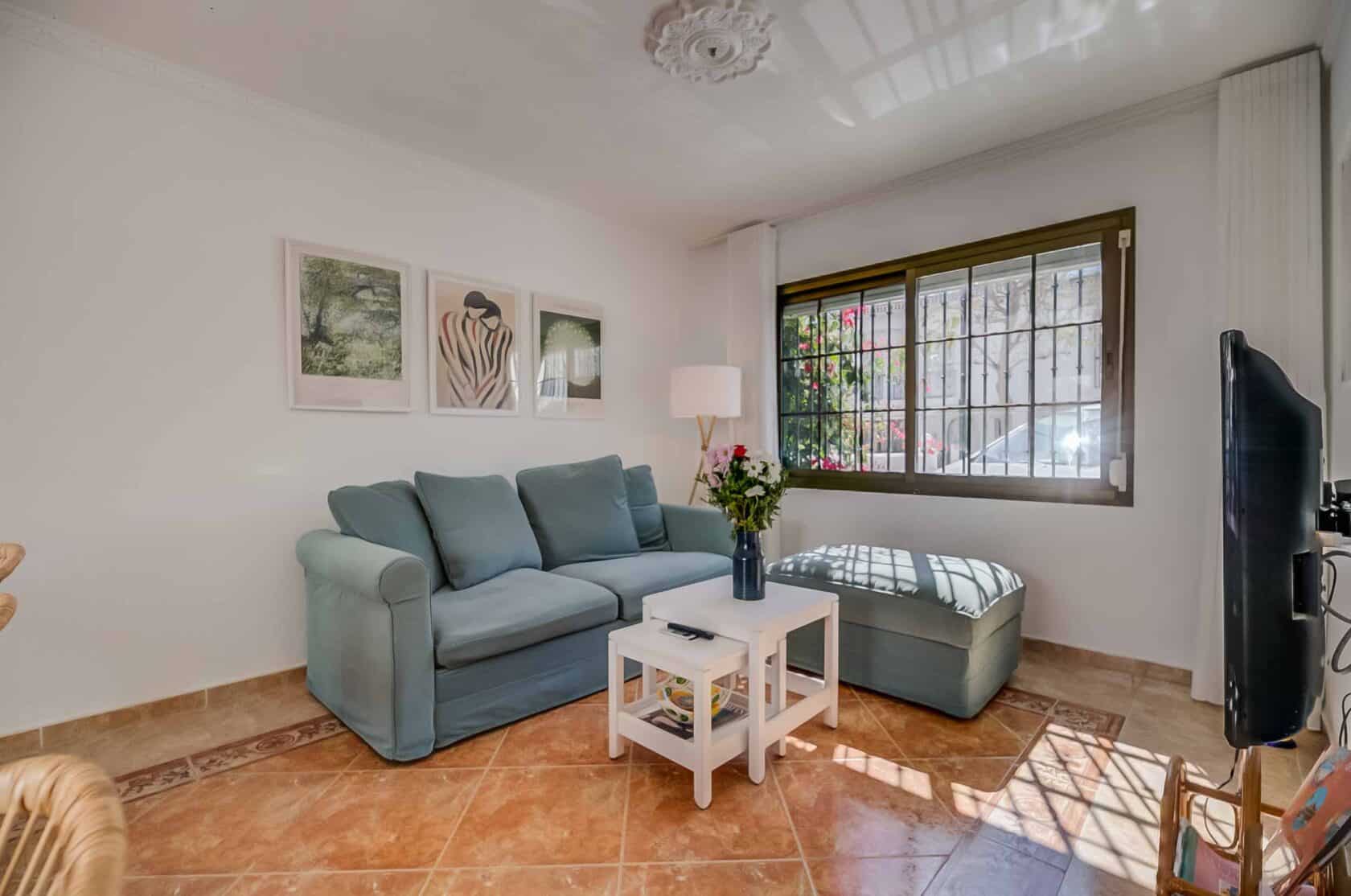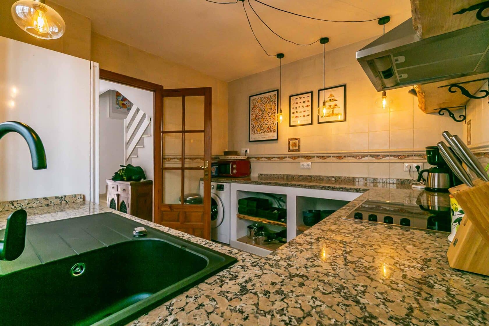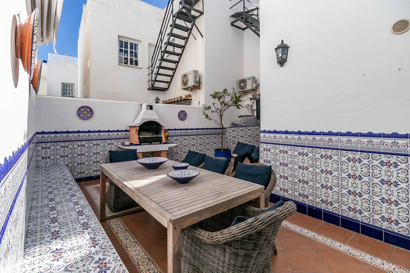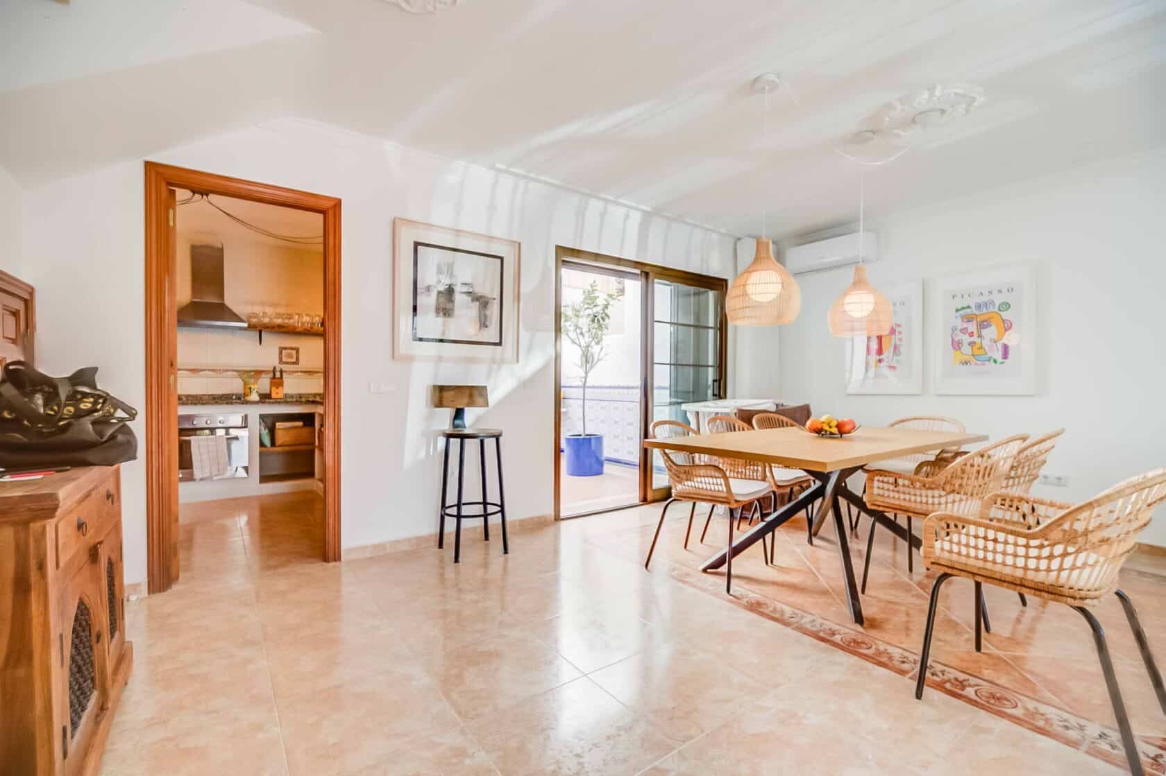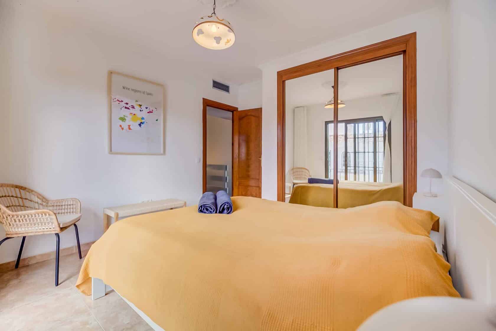 This andalusian spacious townhouse is designed across three levels to maximize comfort and leisure. On the ground floor, you’ll find a bright and tastefully furnished living-dining area with a comfortable sofa, Smart TV, and dining table for six. The space opens directly onto a private patio with an outdoor dining setup, perfect for relaxing or enjoying alfresco meals.