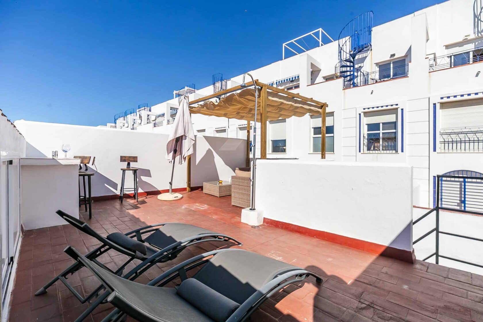 Upstairs, the rooftop terrace is the jewel of the home. This sun-filled area features a chill-out zone, sun loungers, and views of the Mediterranean Sea, ideal for soaking up the Costa del Sol lifestyle!