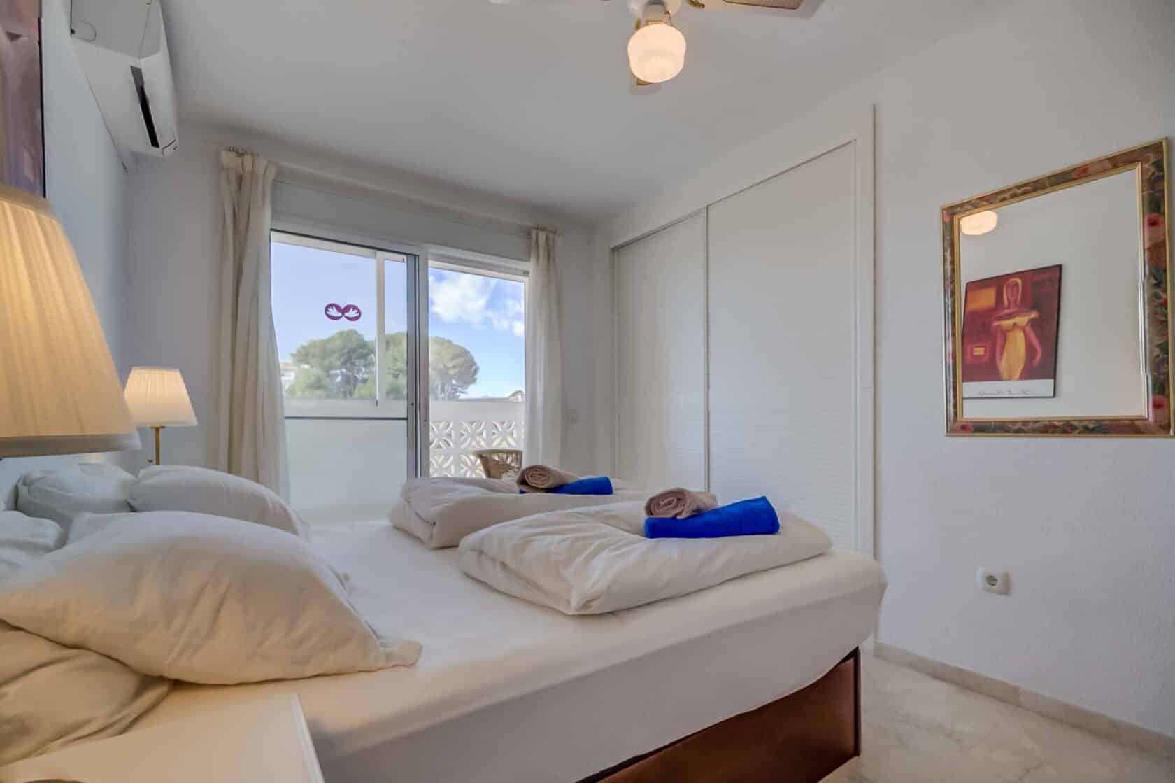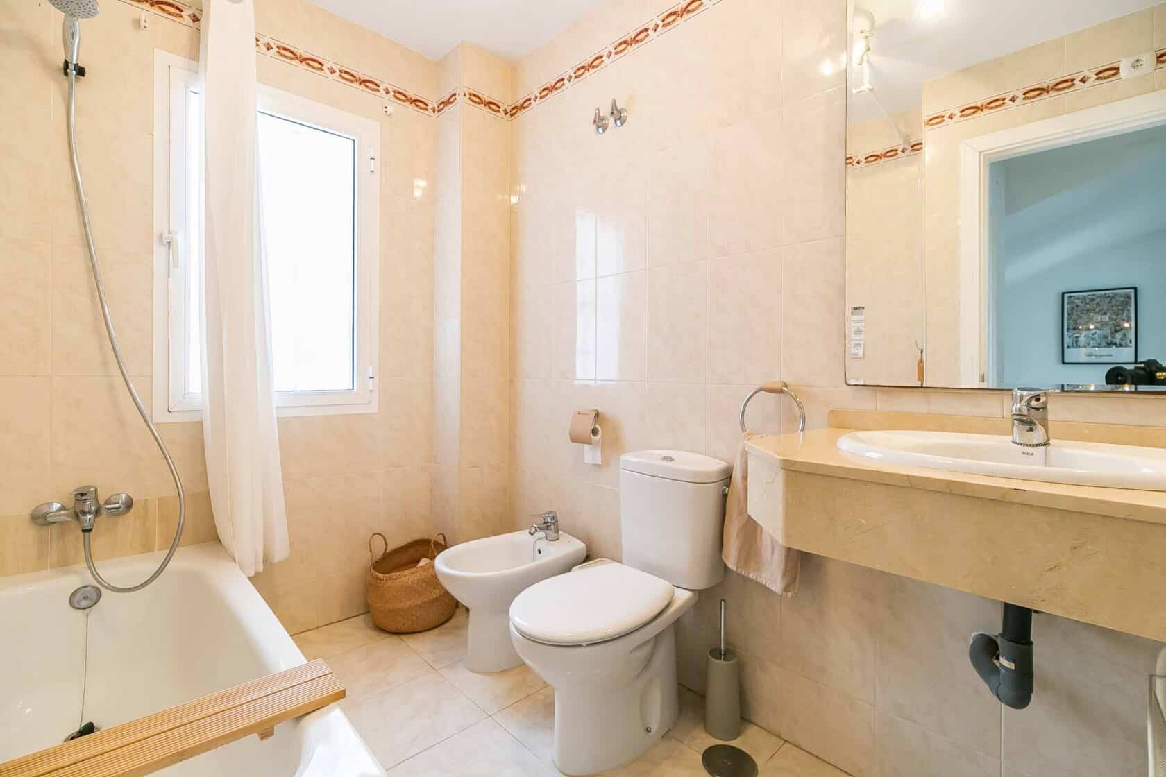 On the second level, the townhouse offers two beautifully designed bedrooms with access to a private terrace perfect for enjoying your morning coffee. The master bedroom features a cozy double bed, a fitted wardrob and en-suite bathroom. The second bedroom is ideal for kids or friends, offering two comfortable single beds and also a fitted wardrobe. The property offers two complete bathroom, one en-suite with a bathtub and the other one with a shower, ensuring convenience and comfort throughout your stay.