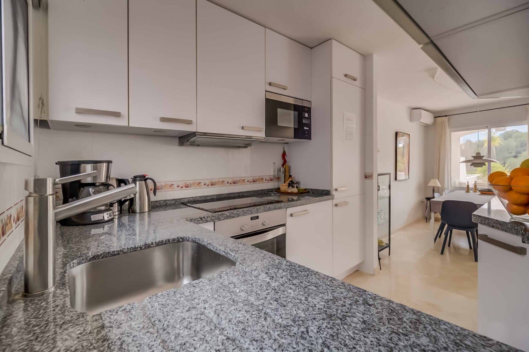Step inside to discover an inviting open-plan living room with floor-to-ceiling windows, filling the space with natural light. Relax on the comfortable sofa, enjoy entertainment on the Smart TV, or step outside to the private terrace to soak up the sun and enjoy picturesque sunsets. The fully equipped kitchen, complete with modern appliances and sleek countertops, provides everything you need to prepare delicious meals, while the dining area creates a perfect space for shared moments.