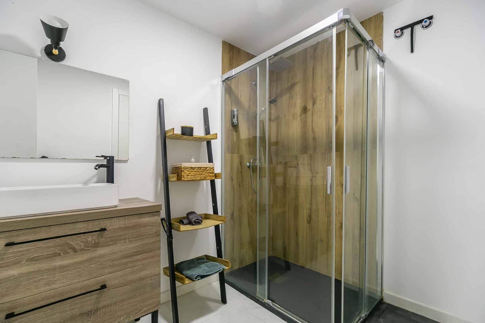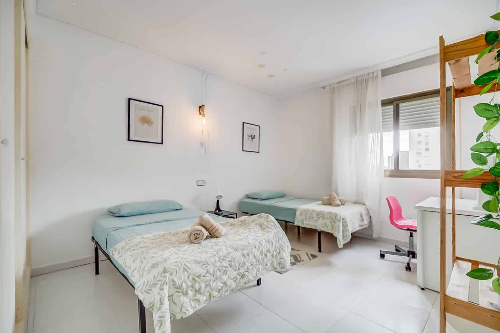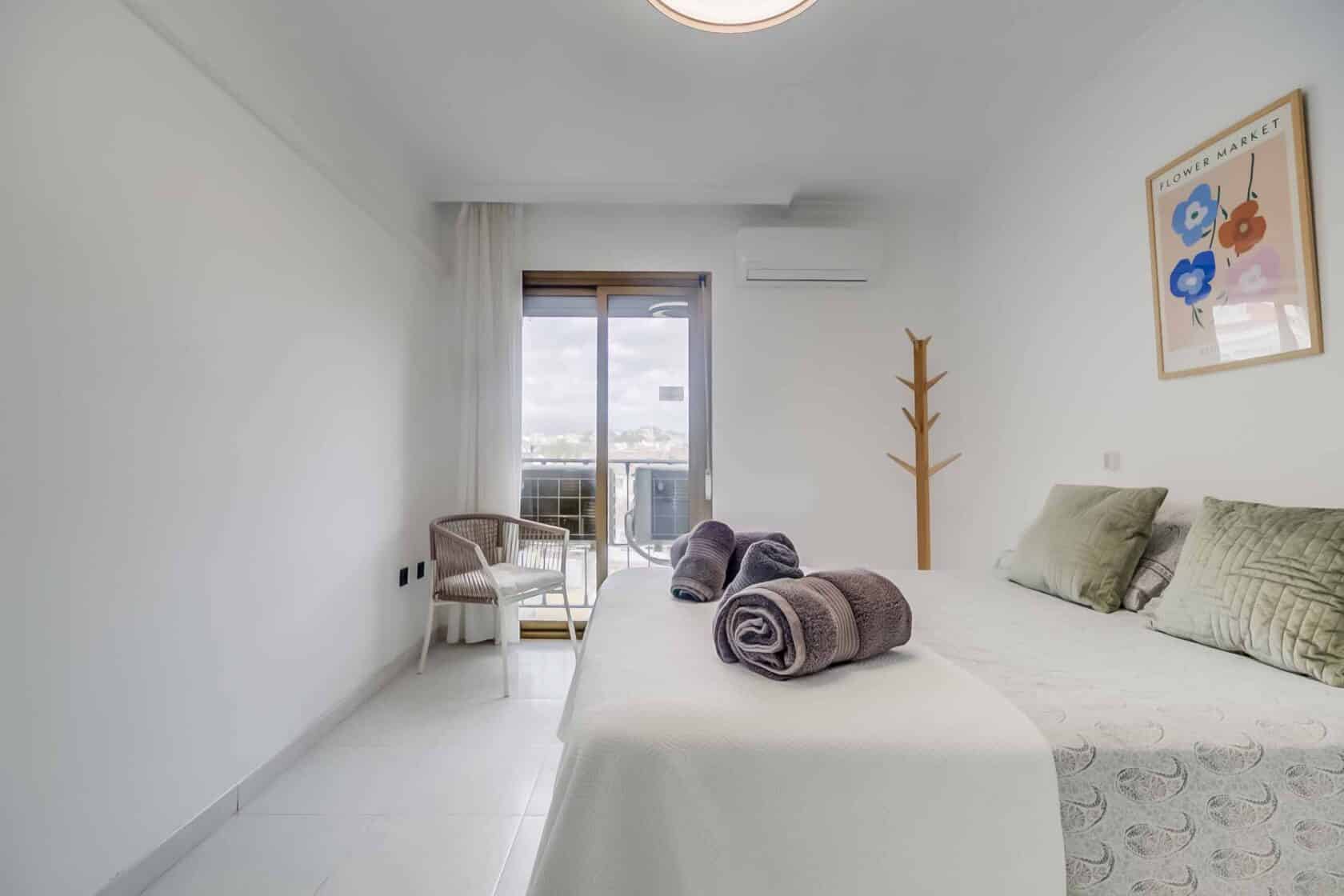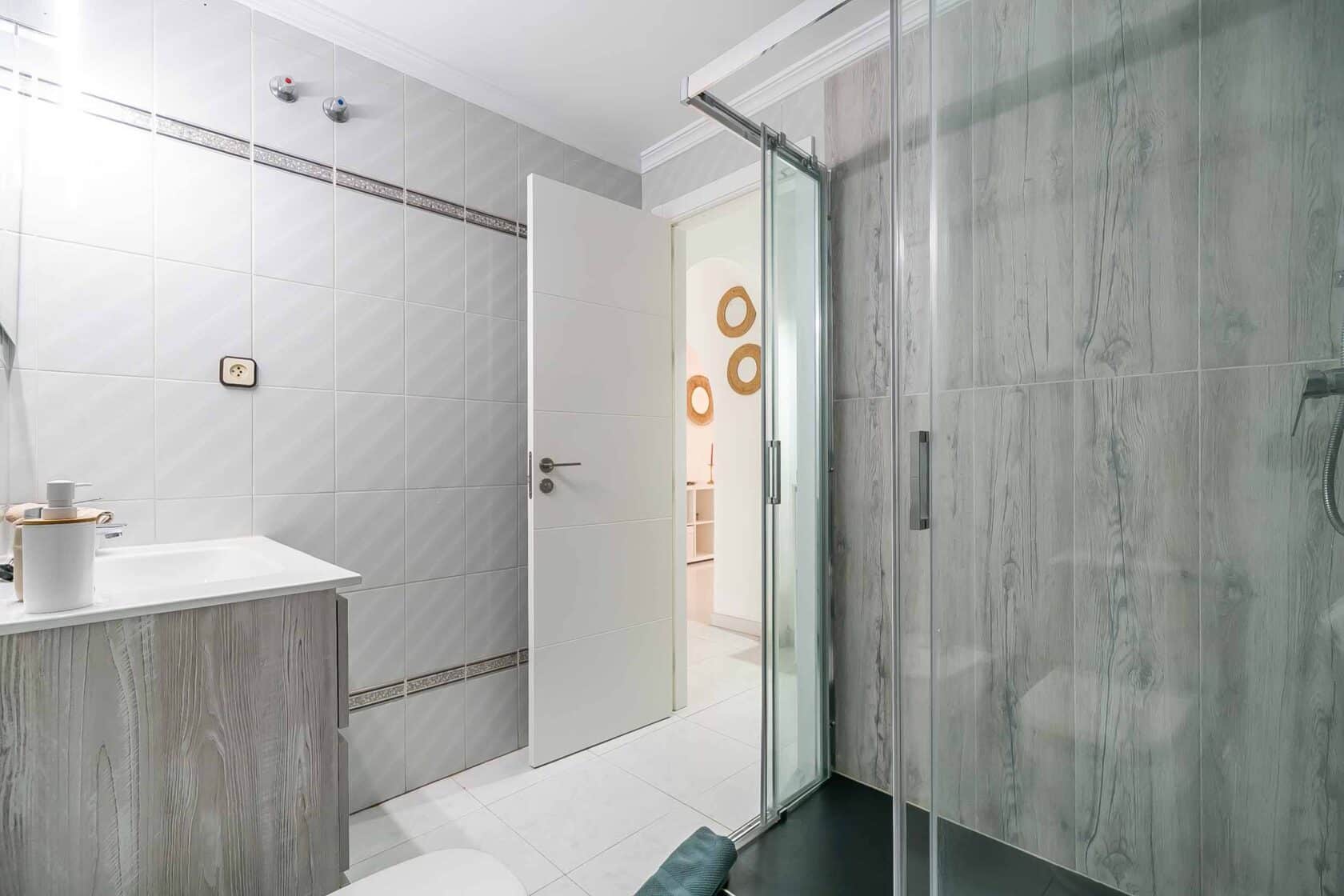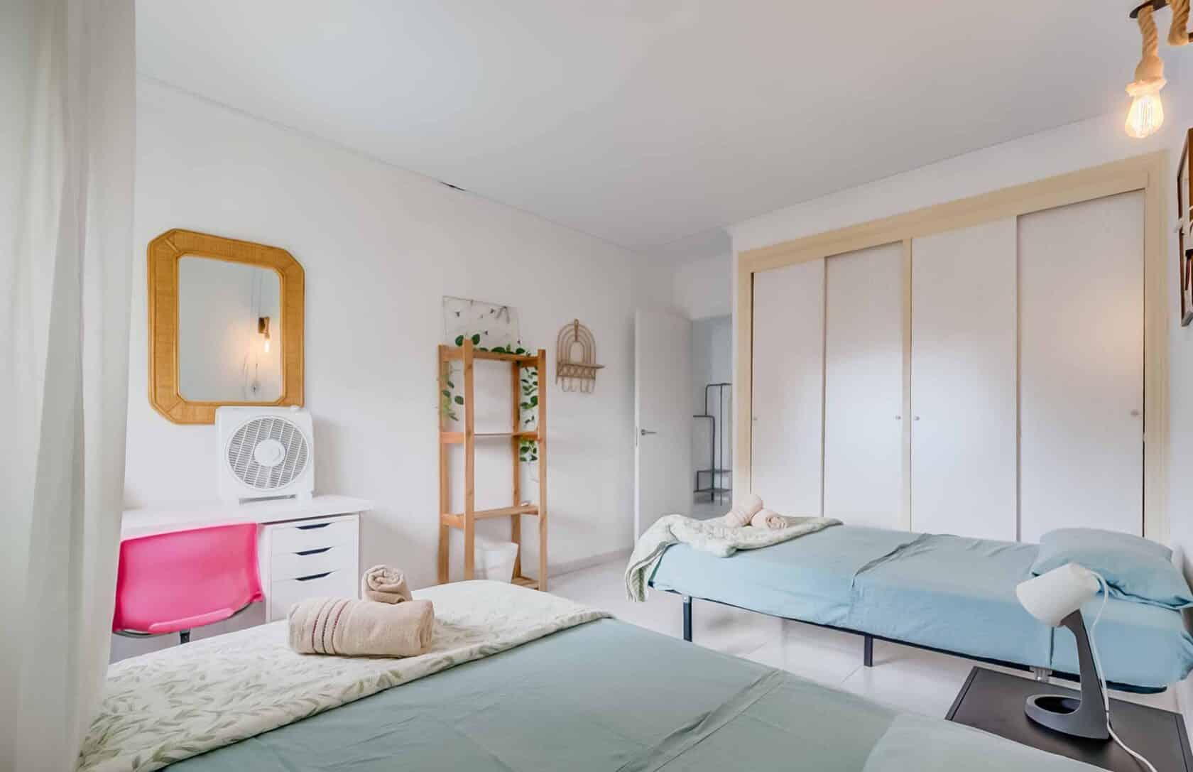 The apartment offers two stylish and cozy bedrooms, each thoughtfully decorated to provide a calm and inviting atmosphere. One room with a double bed and the other one with 2 single beds and large wardrobes for your convenience. Two fully renovated bathrooms with elegant finishes ensure privacy and comfort for all guests, equipped with modern showers, fresh towels, and essential amenities.