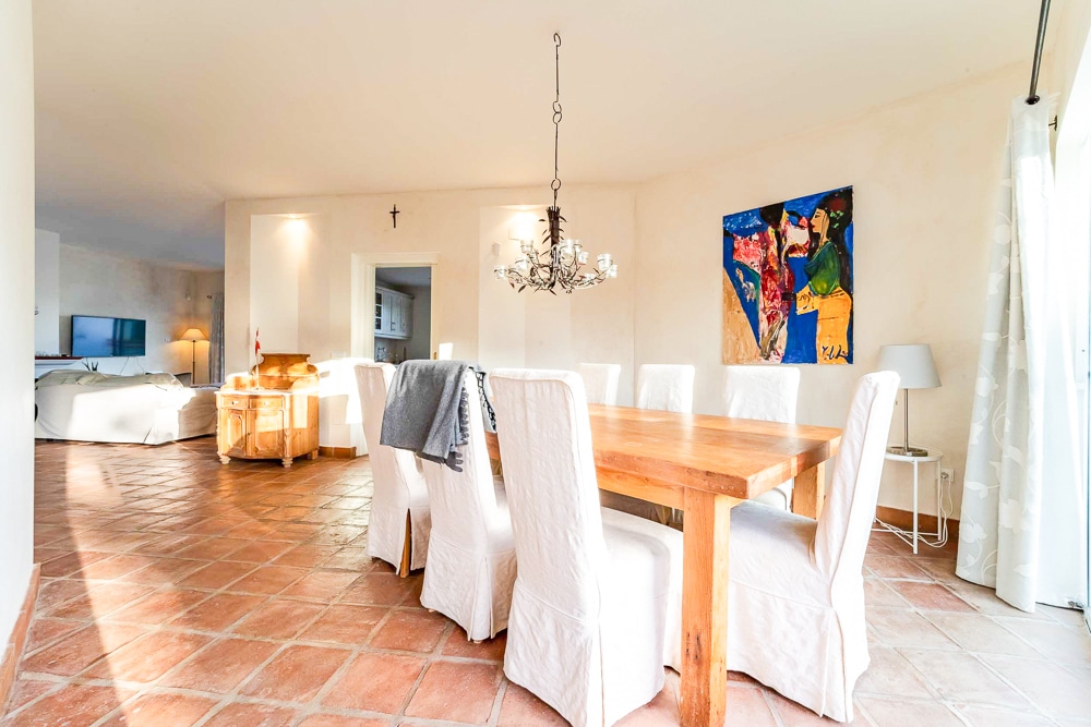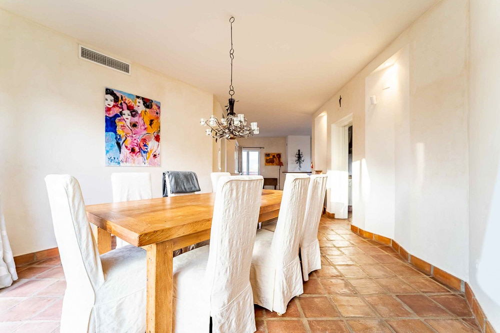 This 220 m2 villa has 2 levels and consists of 3 spacious and bright bedrooms with fitted wardrobes and double beds in all of them . The master bedroom also includes an extra single bed, which can be converted into a double bed, 3 spacious bathrooms, one of them with modern bathtub, a very spacious living room with fireplace and a separate dining area. From the living/dining room there is a direct access to the private garden and pool area as well as to a large terrace with stunning views over the mountains and green areas. A fully equipped spacious kitchen with all appliances, 2 large 40 m2 terraces with fantastic views, one of them with glass curtains that makes the terrace enjoyable also on windy days and during the winter. A private garden , private pool and parking for 2 cars completes this rustic and charming villa.