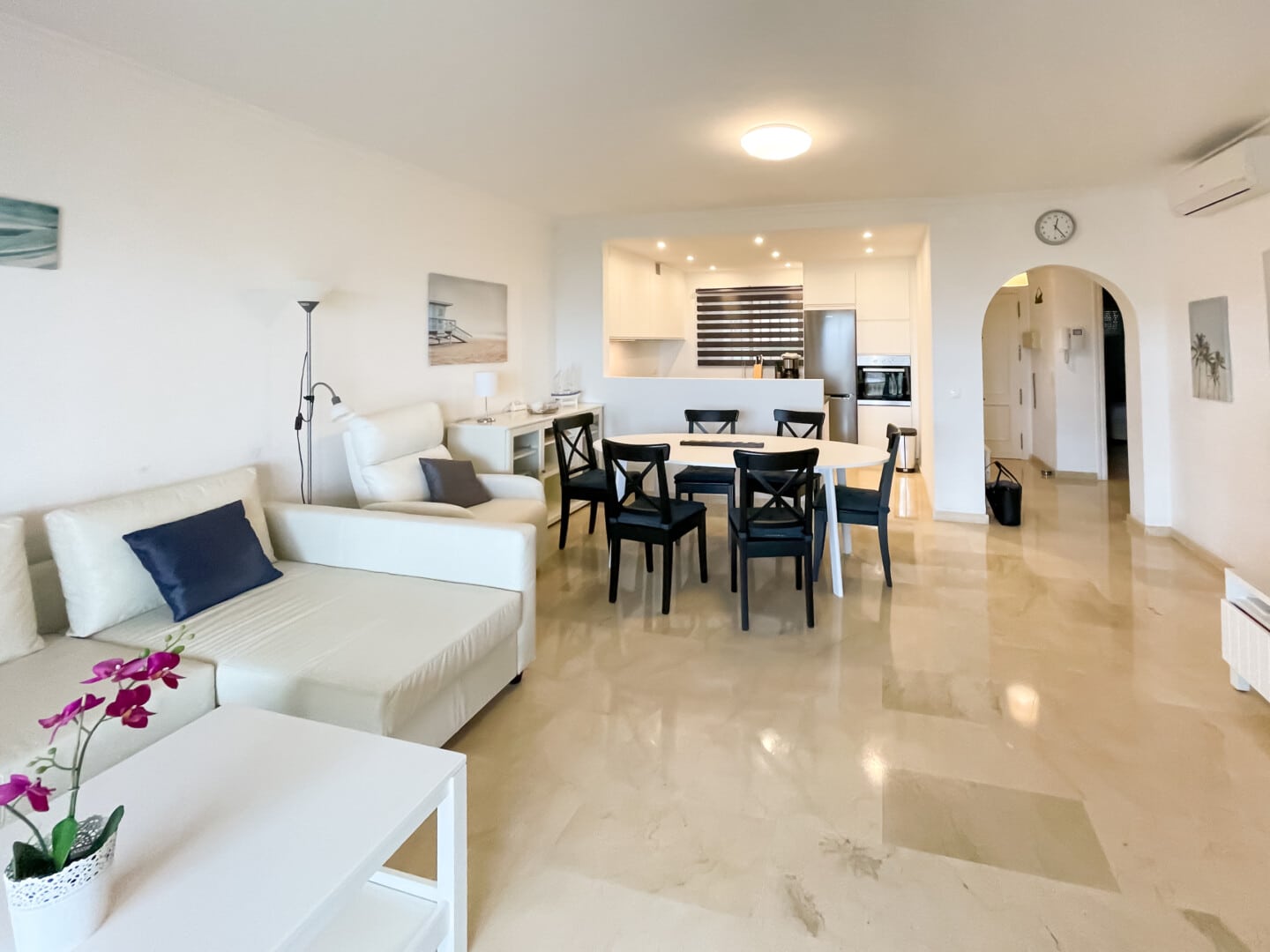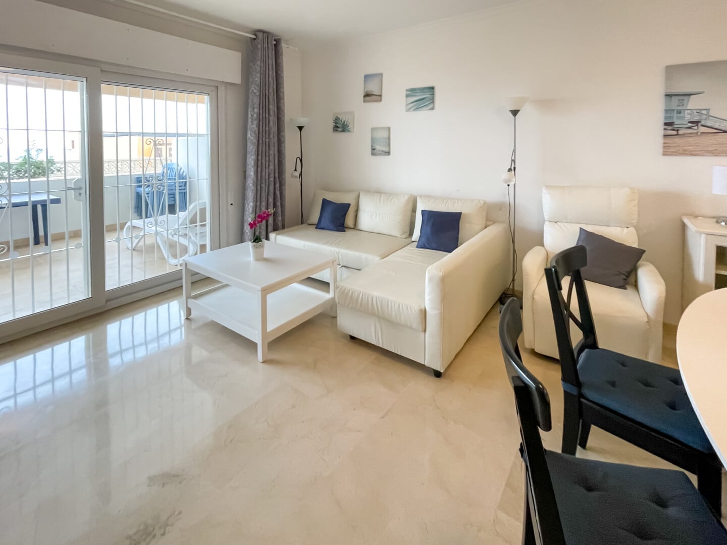 The location of this fantastic apartment is probably the best in Fuengirola, with the river ”Rio de Fuengirola” in the backyard and the old Arabian castle ”Castillo Sohail”, with lots of regularly musical and cultural events, as the nearest neighbor. The famous 7 km long Fuengirola beach promenade is just in front of the apartment. All amenities such as restaurants, bars, shops and supermarkets are all within a few minutes’ walk.