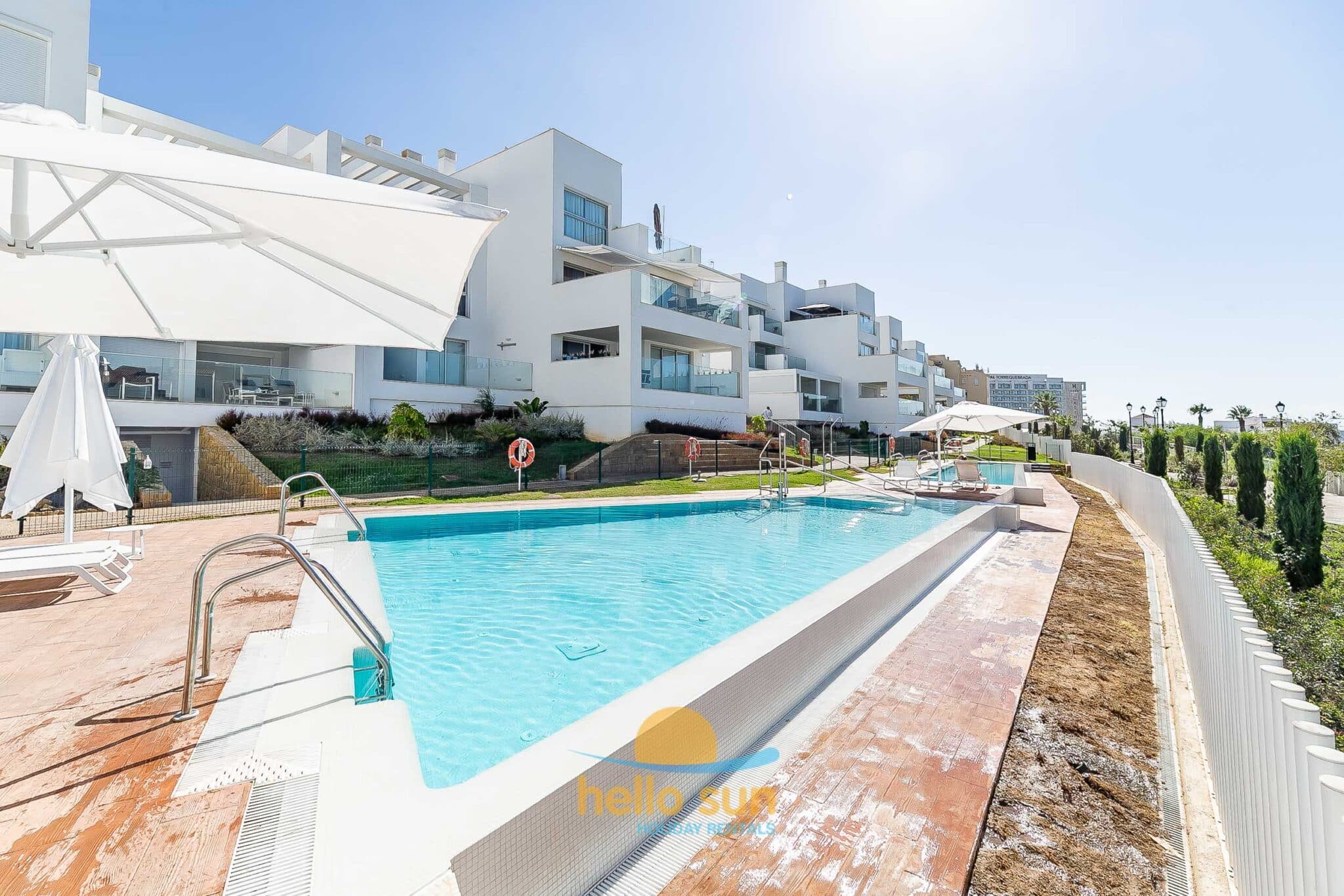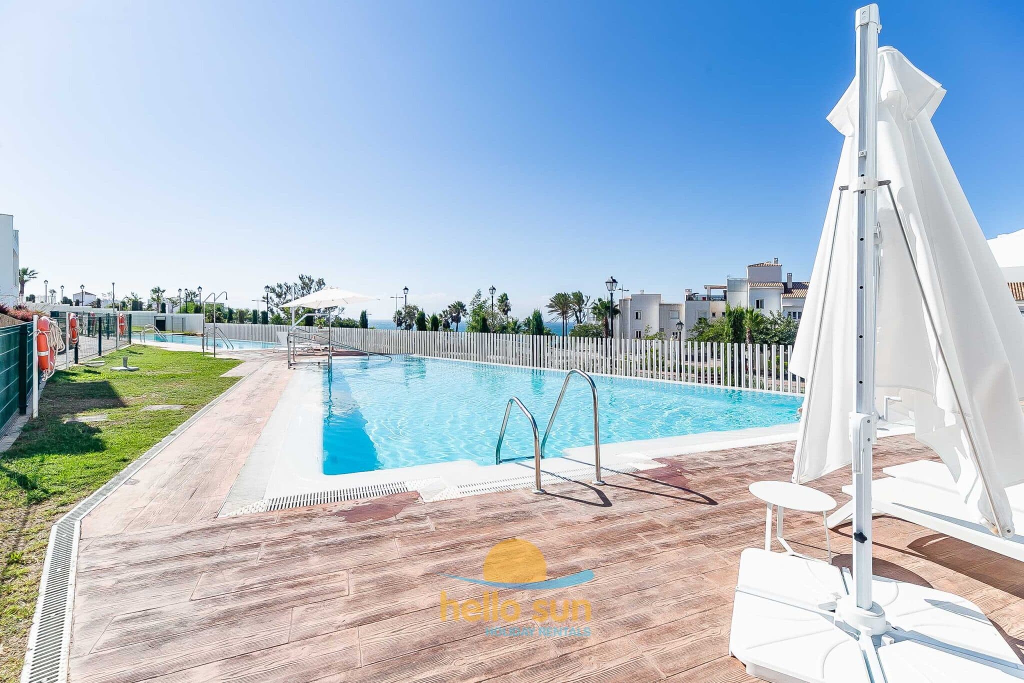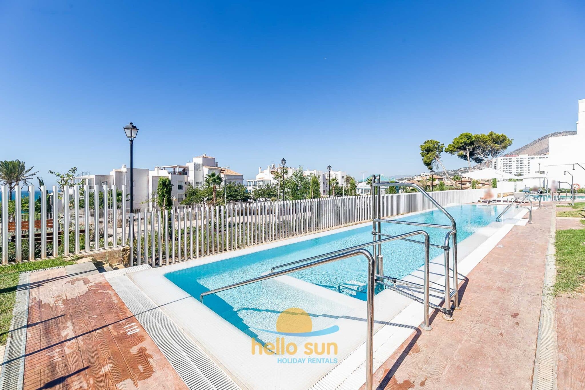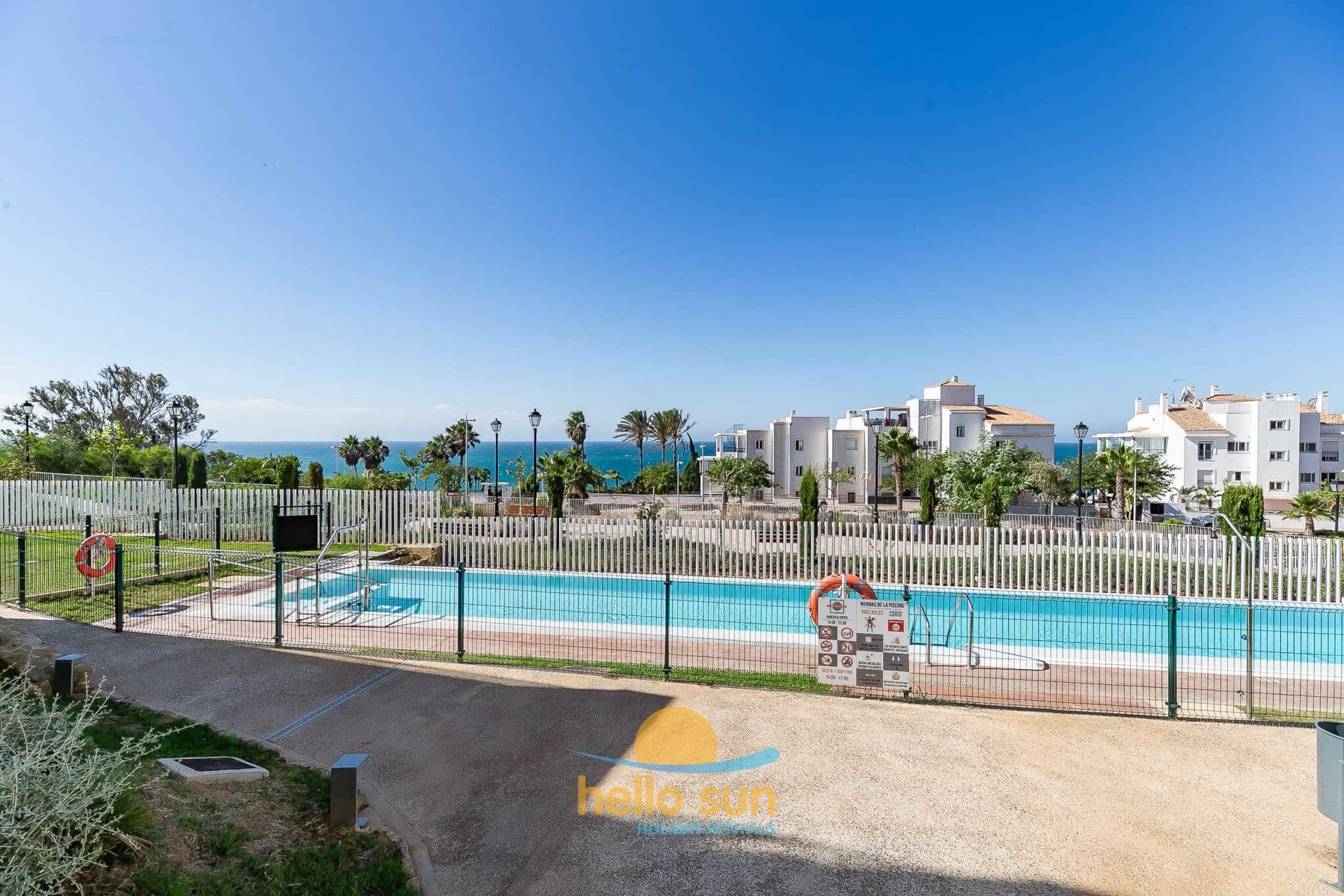 The residential complex is fenced and offers 2 very large swimming pools, one of them for children both with breathtaking views over the Mediterranean ocean, and very well-maintained green areas. Swimming pools, bathrooms and access to the common areas, adapted for disabled people. The urbanization has ample parking areas for residents and a private garage.