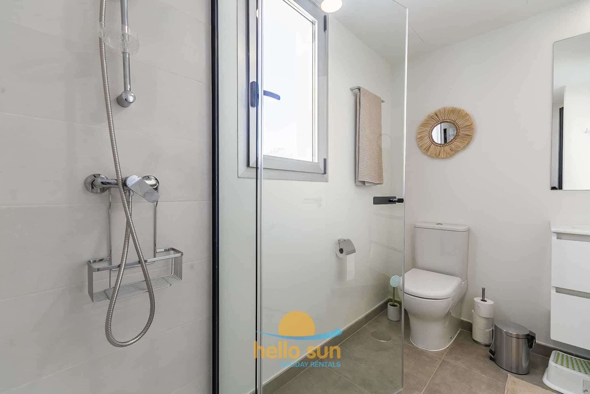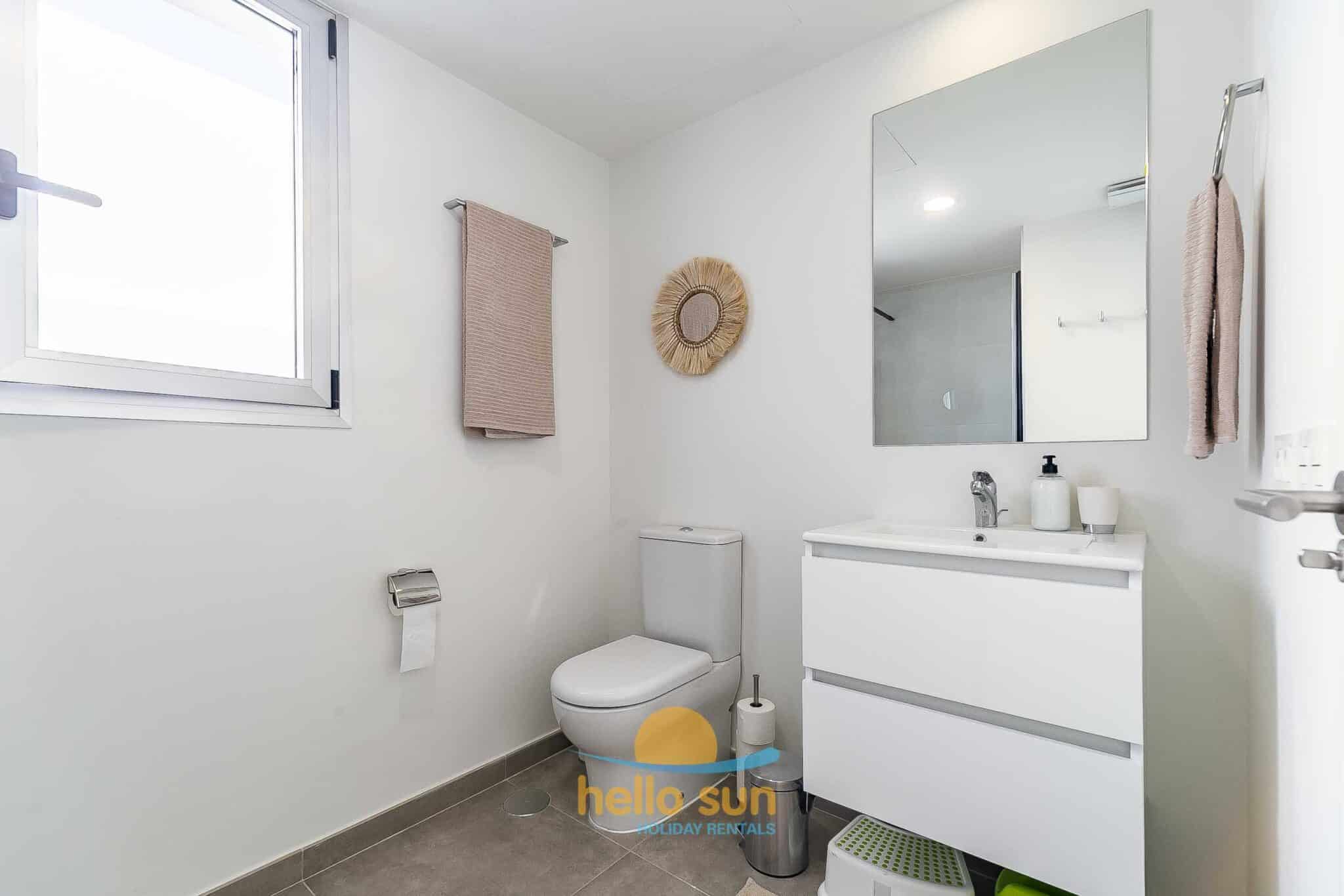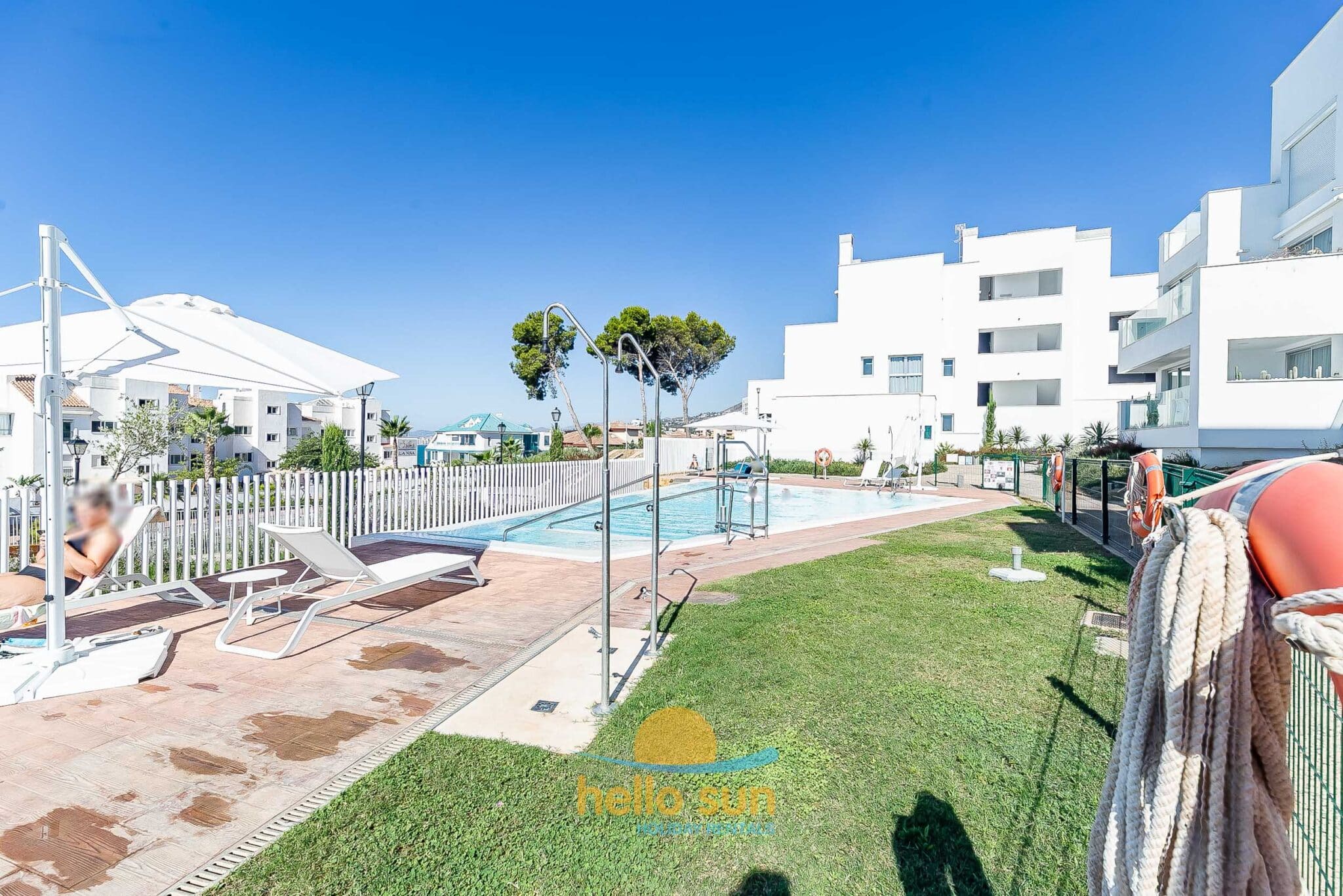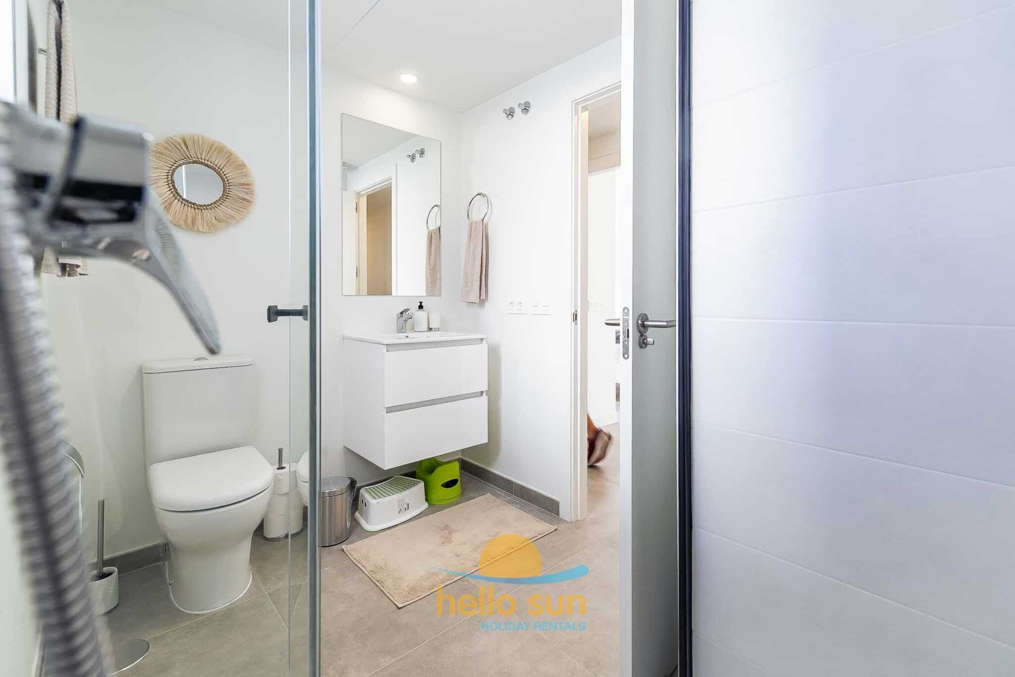 The residential complex is fenced and offers 2 very large swimming pools, one of them for children both with breathtaking views over the Mediterranean ocean, and very well-maintained green areas. Swimming pools, bathrooms and access to the common areas, adapted for disabled people. The urbanization has ample parking areas for residents and a private garage.