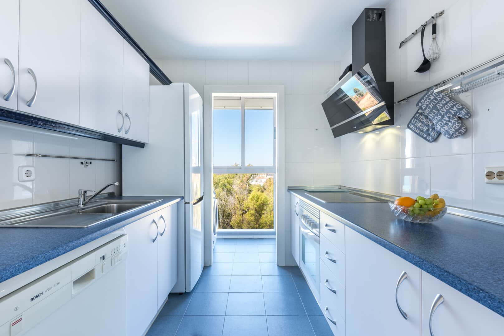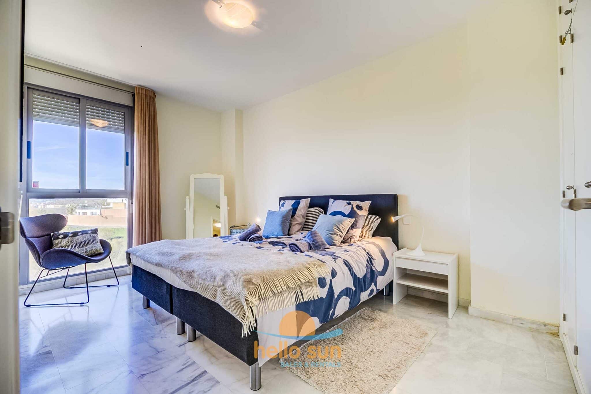 The location near the vibrant cities offers a variety of activities, from fun on the beach with many kinds of water sports to cultural experiences. For art lovers the city of Málaga is a must with its many museums, among them Picasso and Carmen Thyssen. For entertainment, Puerto Banús in Marbella is one of the largest entertainment centres on the Costa del Sol. If you are feeling adventurous, explore El Caminito del Rey – The King’s Path – a walkway that’s pinned along the steep walls of a gorge. Or opt for a more leisurely experience at the botanical garden near Málaga. Visit the attractive little fishermen village “La Cala de Mijas” or go hiking in the Mijas mountains. Or maybe you prefer spending the day at one of the many exclusive golf courses around the apartment. The options are many and for the entire family.