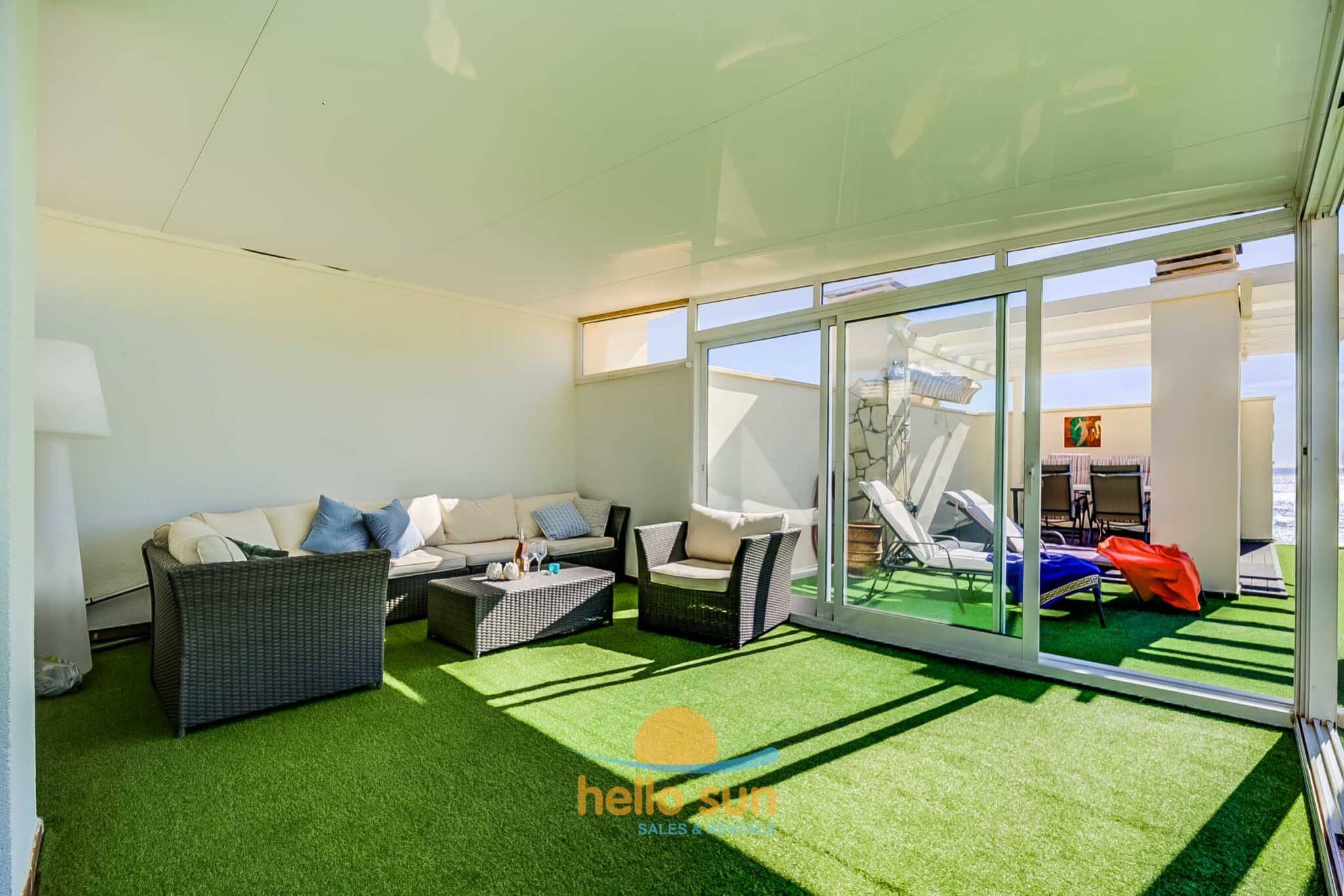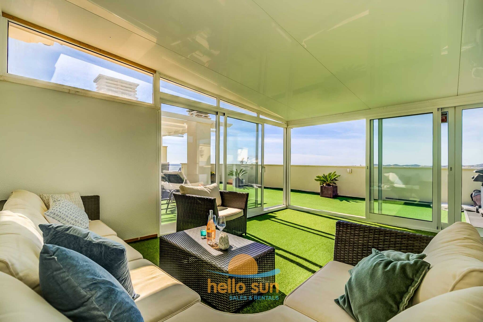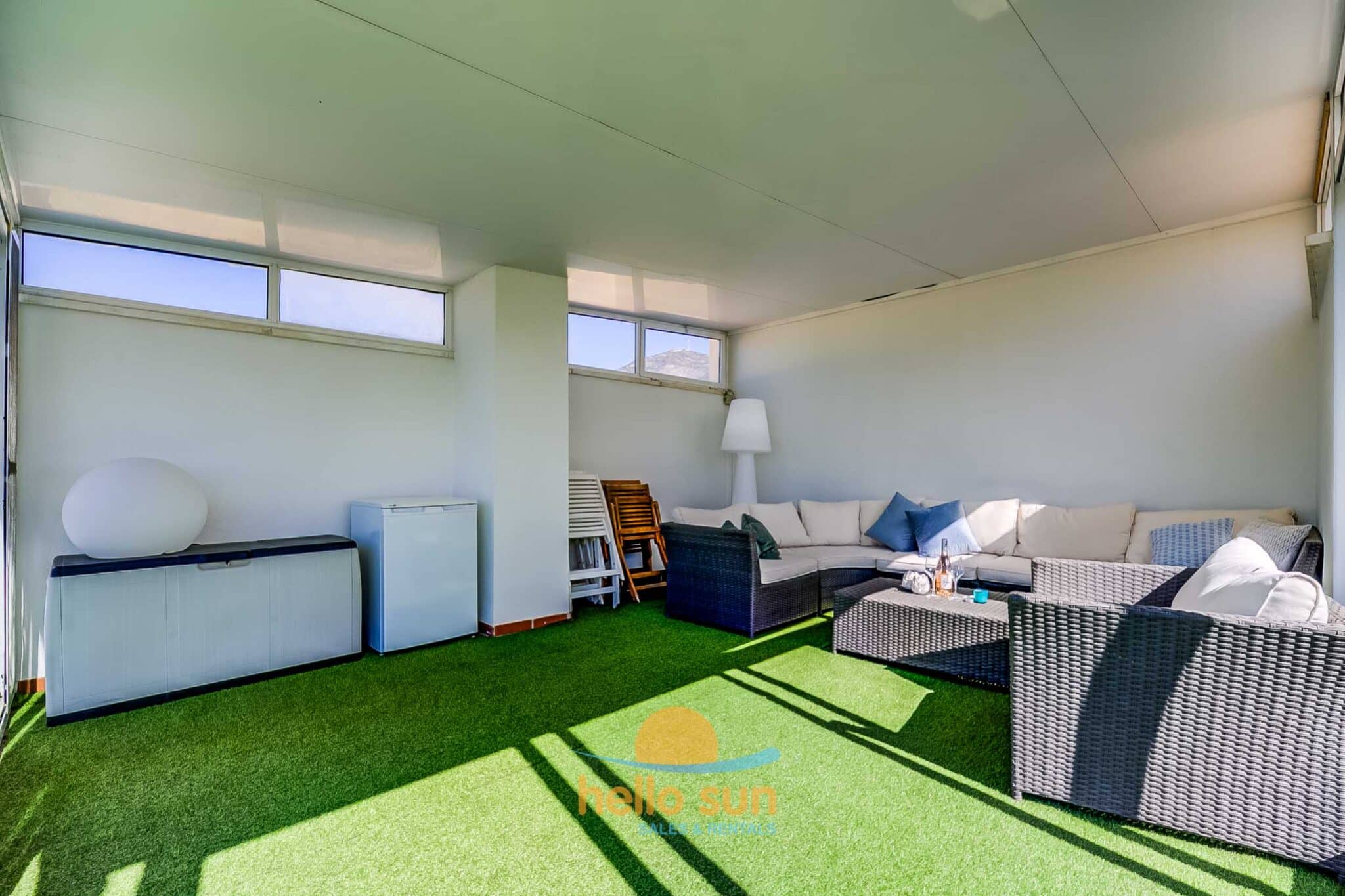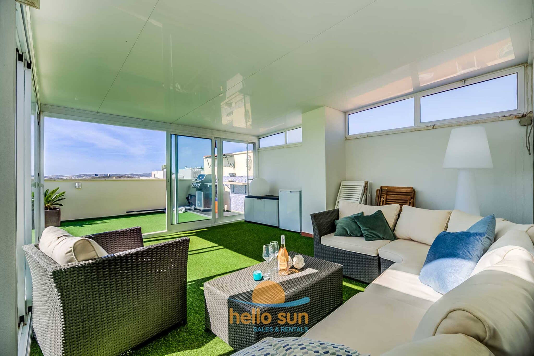 The apartment is situated in a gated urbanization and consists of 2 bedrooms with fitted wardrobes, 2 complete bathrooms, one of them fully renovated, with comfortable showers, a bright living/dining room with direct access to the terrace. The sofa in the living room is a convertible sofa bed (200 x 140) , a fully equipped kitchen with all appliances, a laundry room with washing machine & dryer, a sunny south west facing terrace with fantastic views over the Mediterranean Ocean and Africa (when the sky is clear), the city and mountains, and a huge 75 m2 roof terrace with lots of sun all day long, part of it as a conservatory, where you can enjoy the roof terrace also in windy days or in the winter. The views from both terraces are breathtaking over the Mediterranean Sea and mountains.