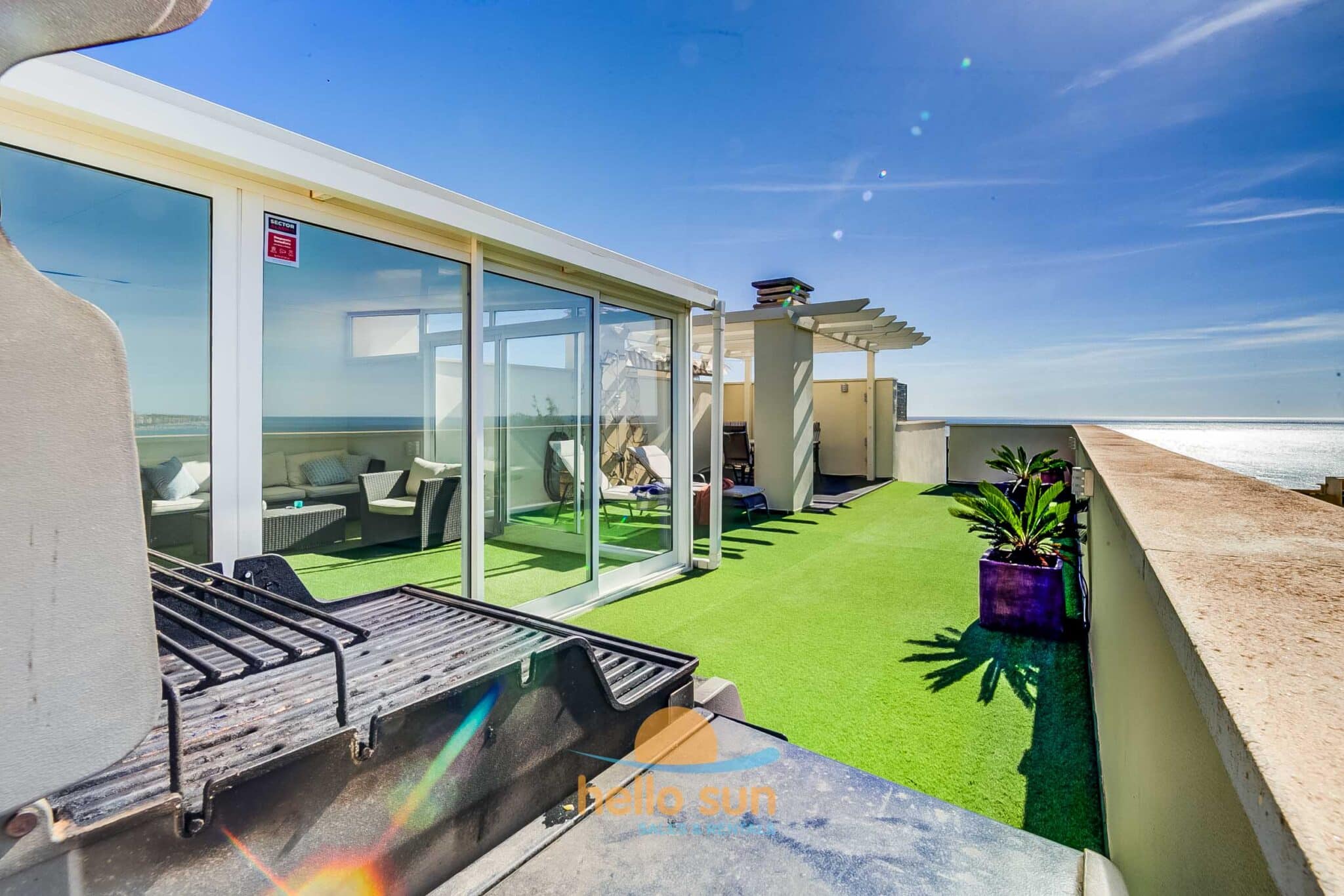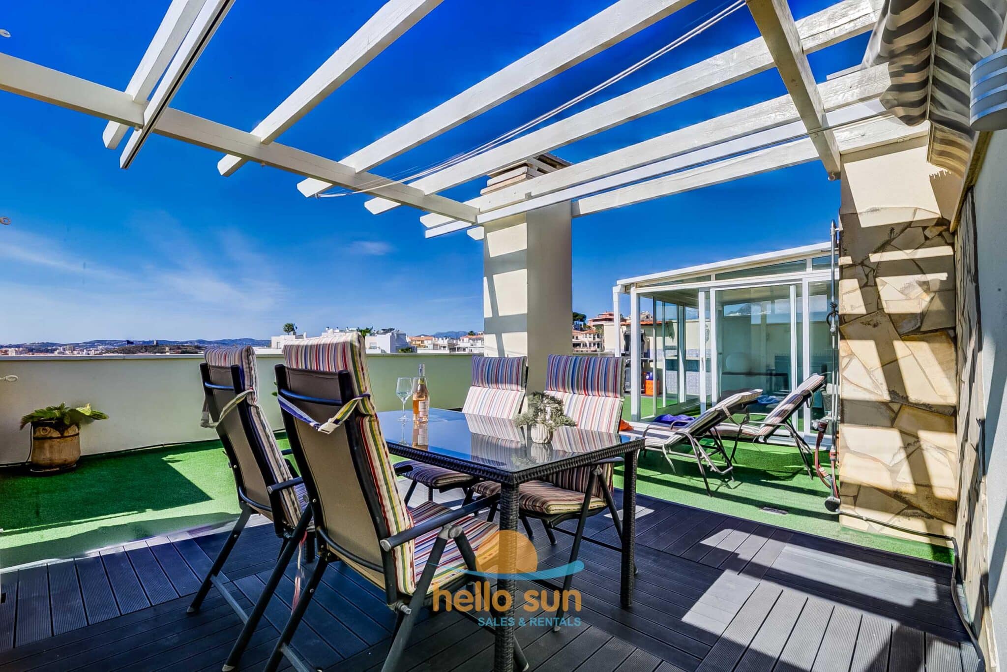 The entire apartment is furnished with comfortable, modern furniture in Scandinavian style. On the terraces you´ll find dining tables, a comfortable lounge, Weber BBQ and sunbeds and awning on the roof terrace.