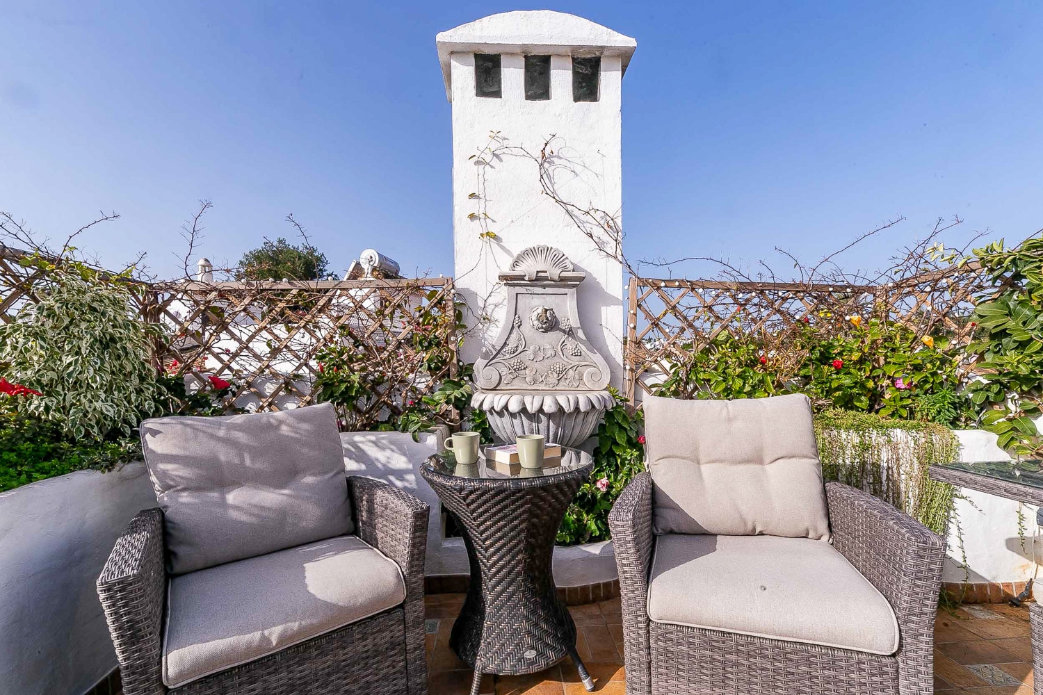 The entire house is furnished with comfortable furniture. The terraces are completely furnished with sunbeds, lounge and dining table as well as BBQ, for you to enjoy the day.