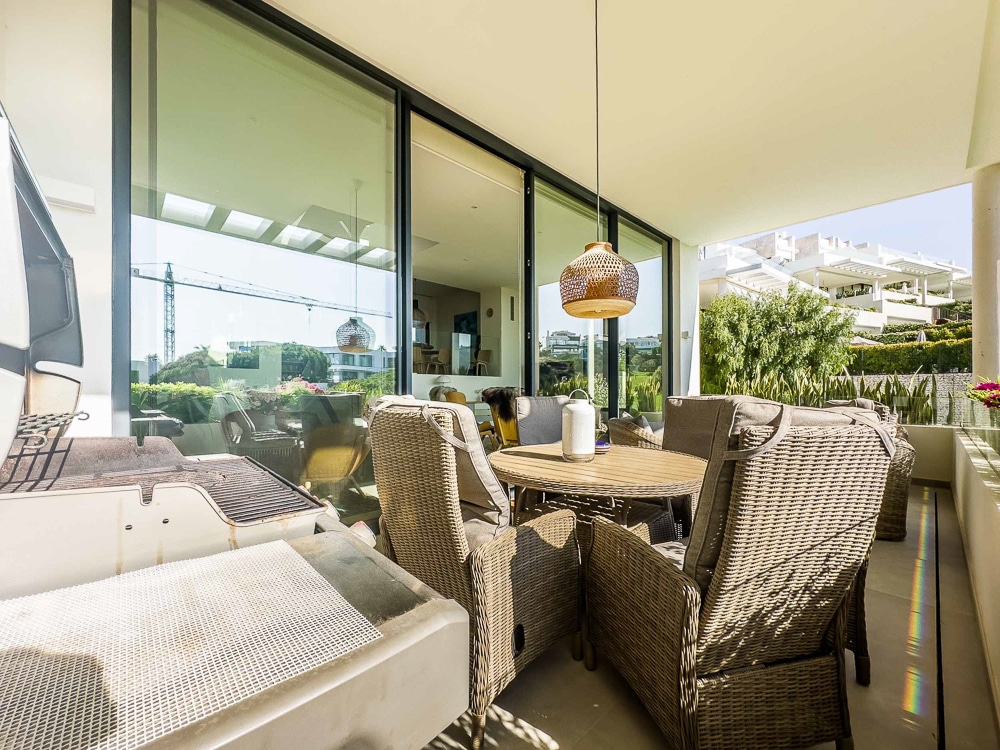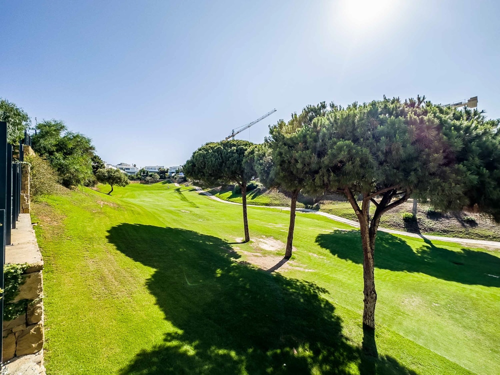 This level is divided into 2 sections. The upper part consisting of a fully equipped kitchen with all appliances and a dining area. The lower part is a spacious living room with wide ceiling to floor glass doors leading to a very spacious terrace with stunning views over the famous Cabopino golf course .
