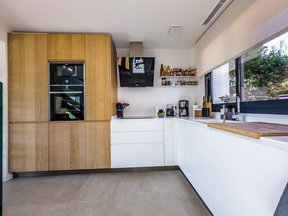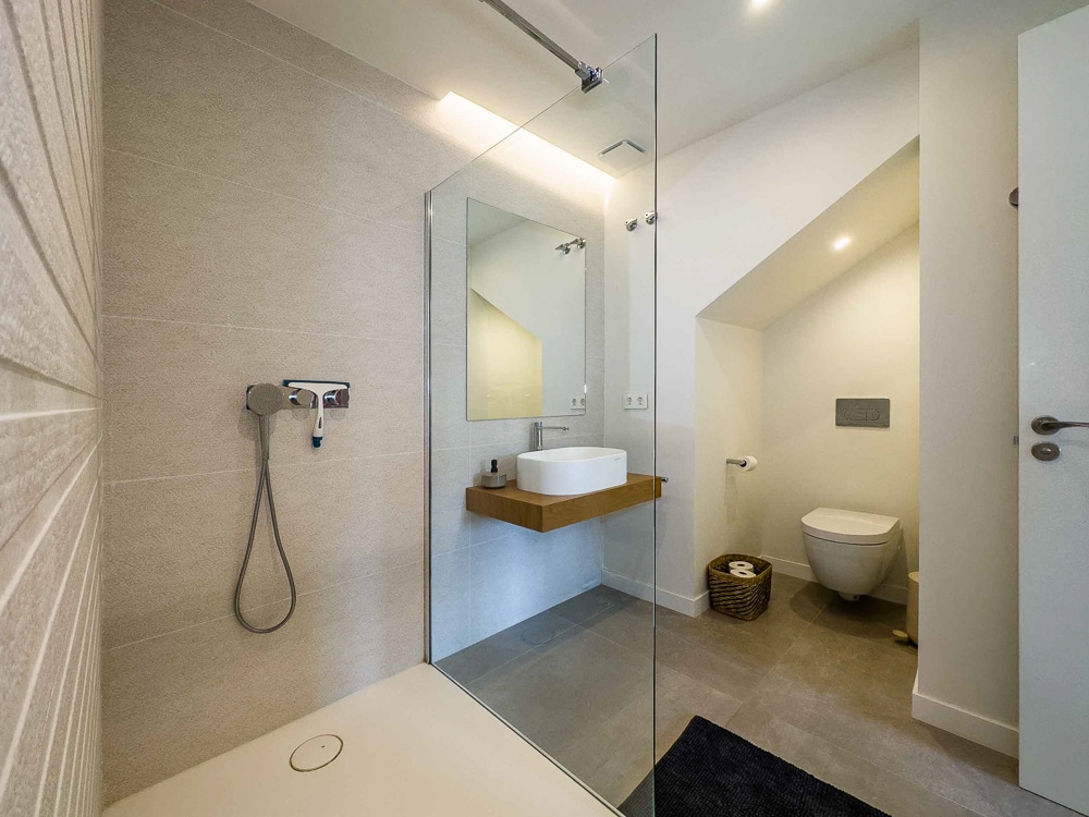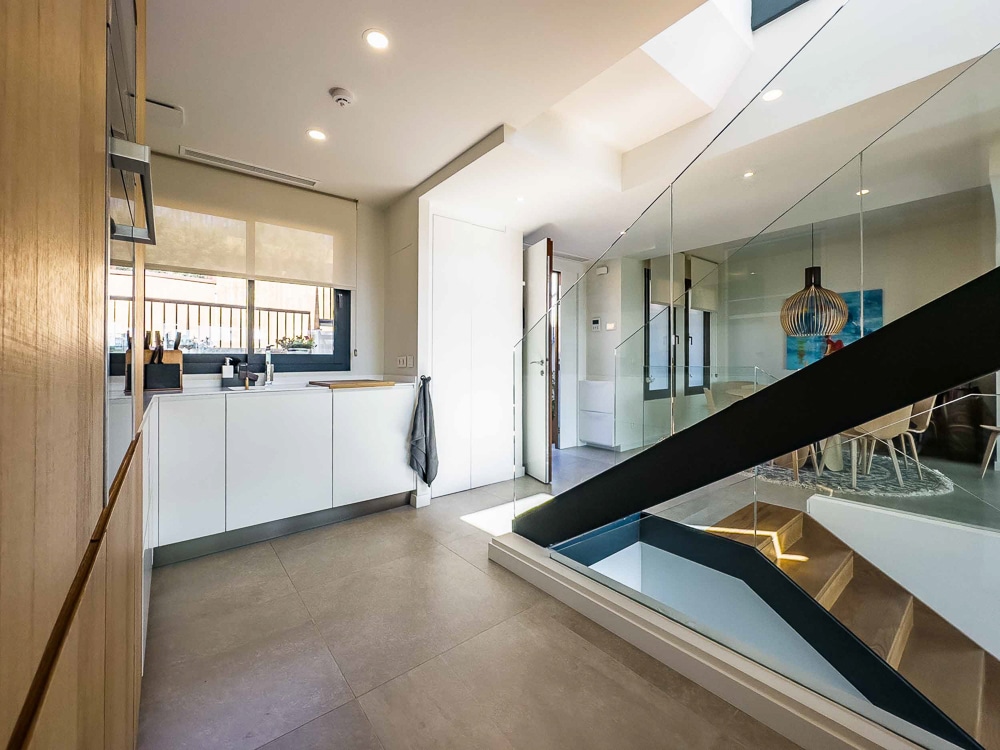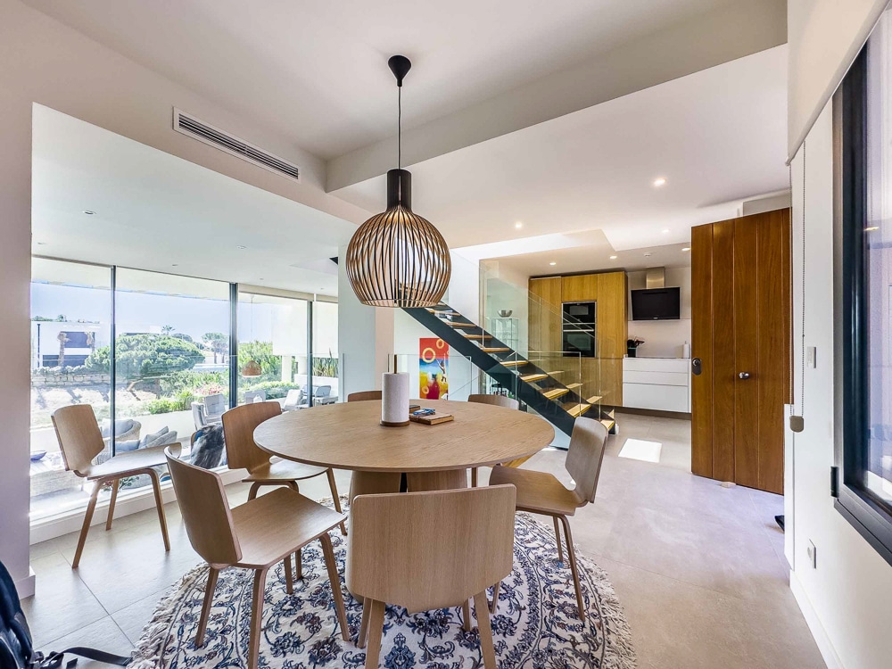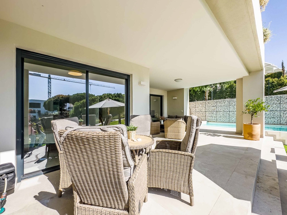 There are in total 3 spacious south west facing terraces in this beautiful house, in total 160 m2. The terraces and pool area are furnished with quality garden furniture with several comfortable lounges, dining tables, BBQ, parasols and sunbeds.