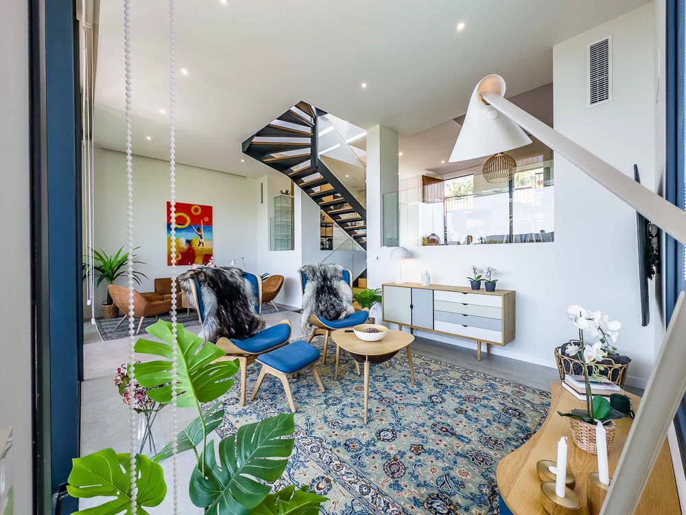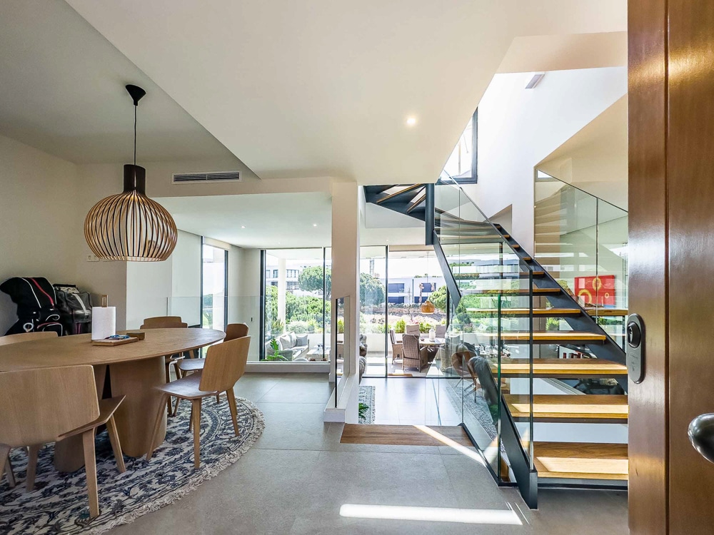 Features 2 spacious bedrooms with fitted wardrobes, smart tv, 2 “en suite” bathrooms with shower, a guest toilet and a laundry room. Both bedrooms have ceiling to floor wide glass doors leading to the pool area and backyard. A modern staircase going from upper level to the lower level.There are 2 private parkings available for this accommodation.